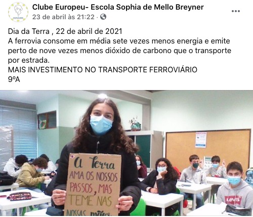 O Clube Europeu da Escola juntou-se ao Programa Eco-Escolas nestas atividades. Além disso, manifestou-se pelo Clima e deu ênfase ao tema da “promoção” do transporte ferroviário, como opção mais sustentável.