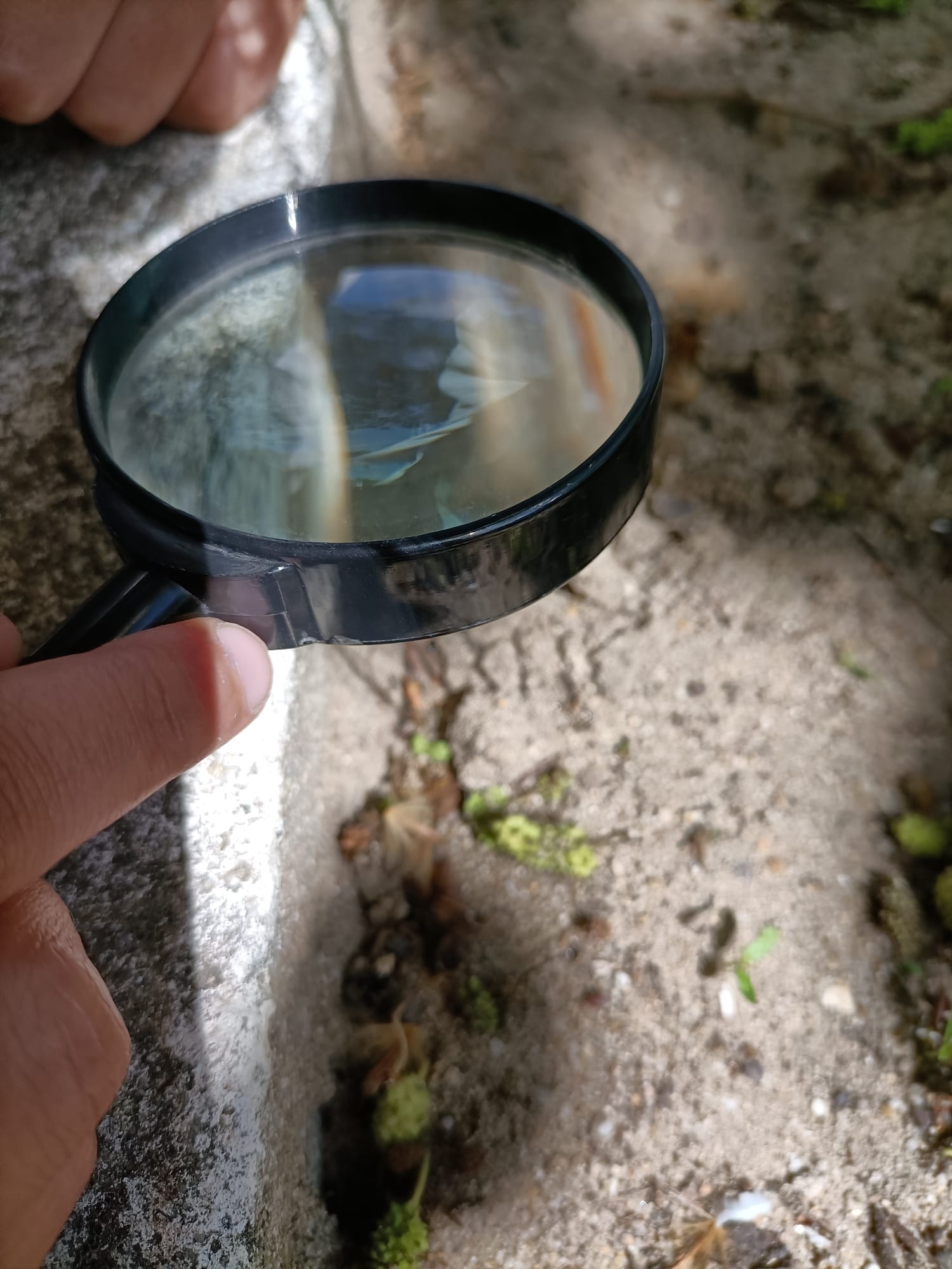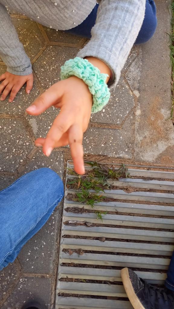 Observação do espaço exterior (recreios, cantinho da natureza e canteiros) em busca de animais e/ou plantas existentes no local.