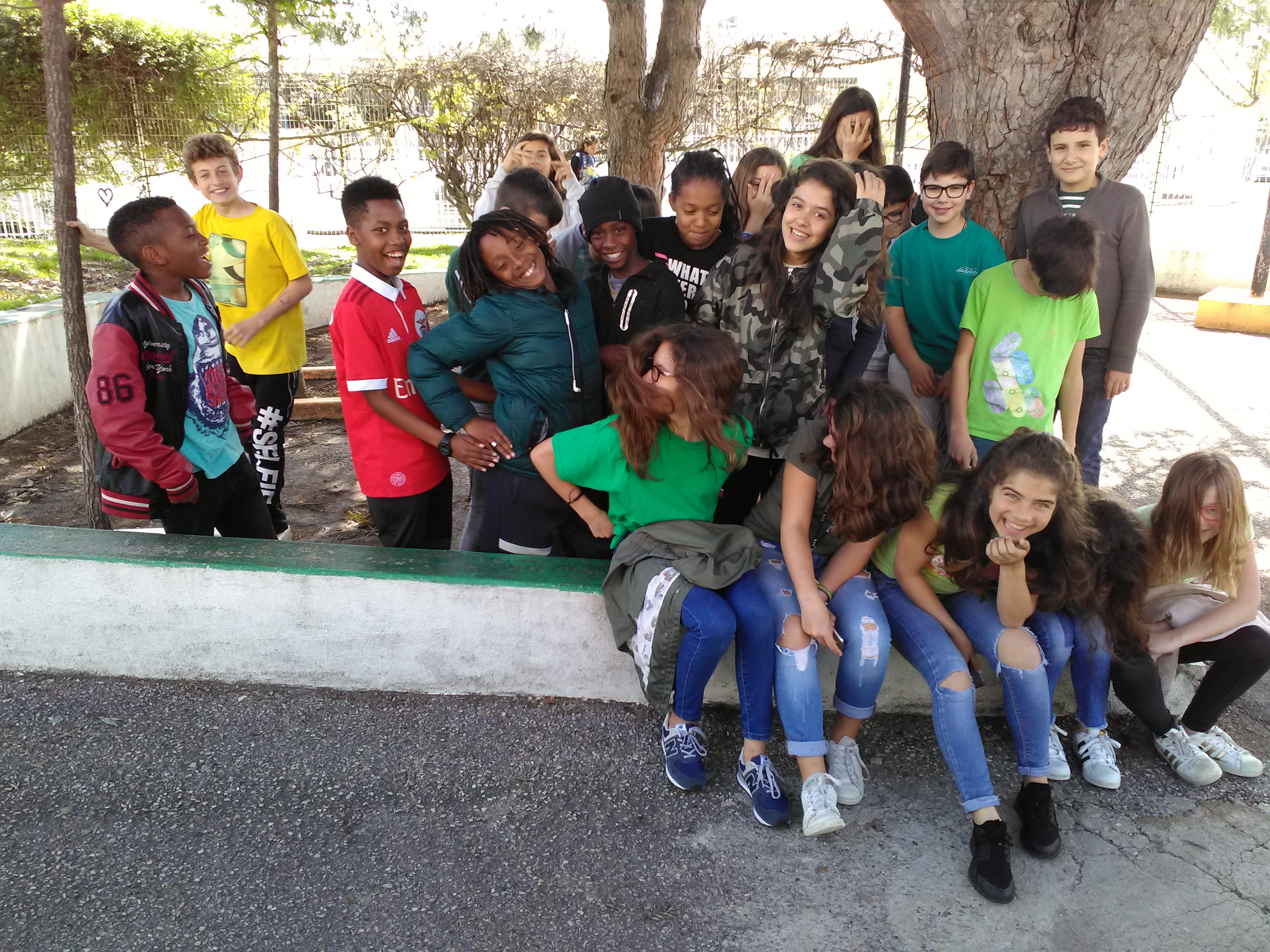 Mais se informa, que pedimos a docentes e alunos que trouxessem uma peça de vestuário verde como símbolo do Global Action Days. Esta foi realizada com a turma 6ºB com algumas fotos juntos a uma árvore.