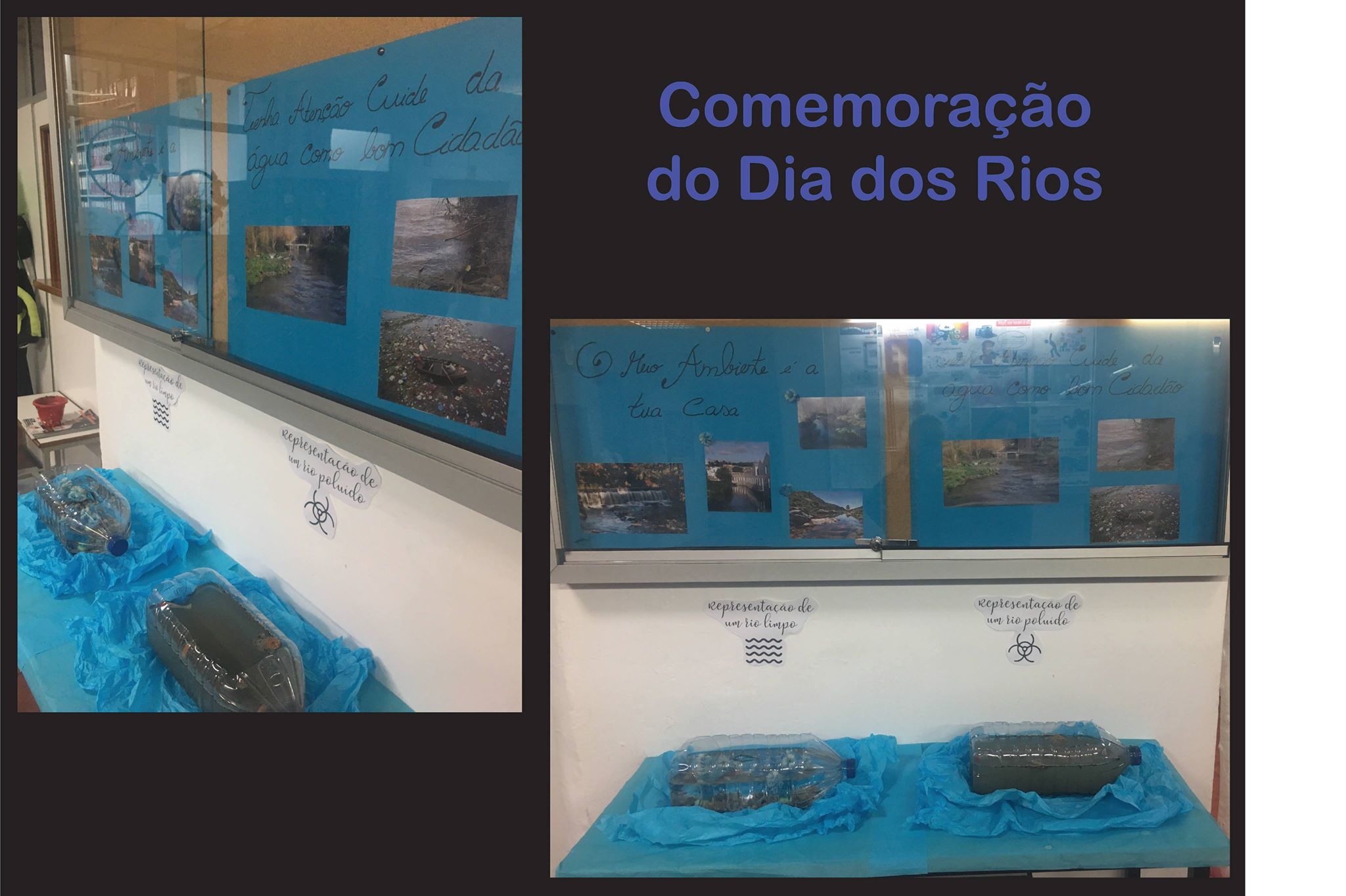 A Exposição pretendeu também representar, através da utilização de materiais recicláveis preparados pelos nossos alunos, as diferenças alarmantes entre um rio limpo e um rio poluído