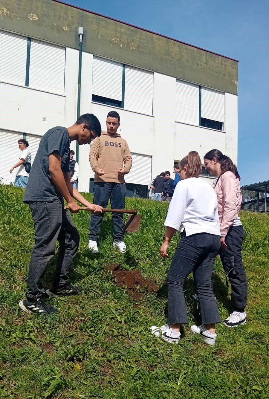 Dia da Mundial da Árvore, da Floresta e da Poesia no AEV, plantação de um azevinho e leitura de poemas de autores portugueses sobre árvores e floresta. Participação das turmas 10ºVD, 9ºRC e Programa Eco-Escolas da EBS Vilela e EBS Rebordosa do Eco-Agrupamento de Escolas de Vilela. Dia da Árvore, Dia da Poesia, Dia da Floresta. O dia 21 de março é tudo menos uma página em branco no que toca a efemérides. Criado em 2012 por iniciativa da Assembleia Geral das Nações Unidas, o Dia Internacional das Florestas tem como objetivo principal a sensibilização do público em geral para a importância de todos os tipos de florestas no planeta. Neste ano de 2024, o tema é “Florestas e Inovação: novas soluções para um mundo melhor”. Os alunos das turmas envolvidas, em articulação com o programa Eco-Escolas do Eco-Agrupamento, Clube da Floresta e as disciplinas de Geografia e Cidadania e Desenvolvimento, plantaram nos espaços verdes do recinto escolar, alvo de recente intervenção e poda, um azevinho como árvore autóctone da região e declamaram poemas de autores portugueses sobre as árvores e floresta como Nuno Júdice, Sophia de Mello Breyner Andresen e Camões. Esta atividade serviu de mote também à participação no desafio da FAPAS: postal digital #árvoresextraordinárias2024.