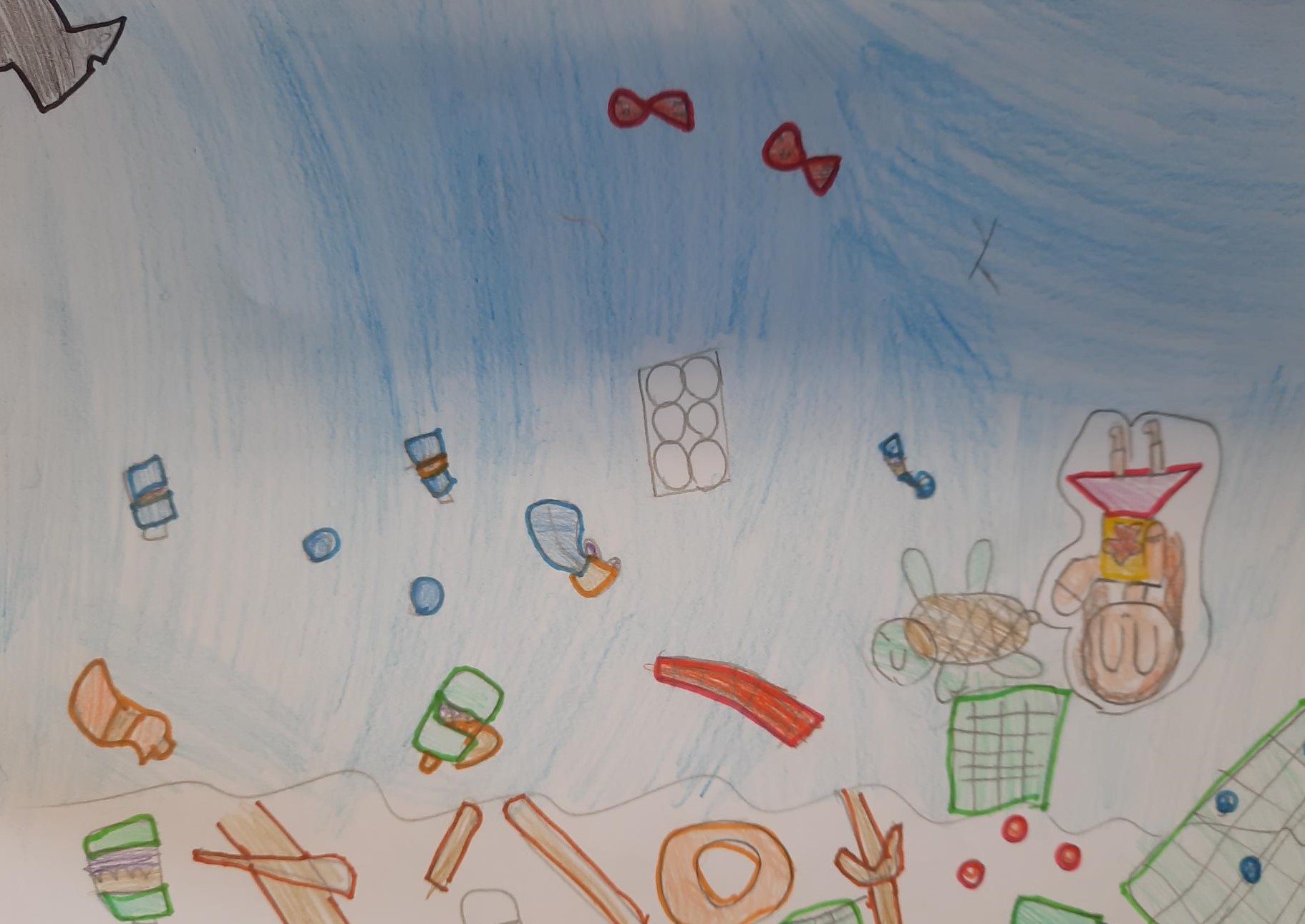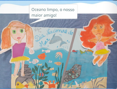 Após a leitura dos livros relacionados com o tema, “A Estranha Ilha Flutuante” e “O dia em que o mar desapareceu”, realizaram-se ilustrações, pesquisas sobre a importância e a poluição do mar e a construção de um painel, “O mar precisa de Ti”, com o lixo da escola. Também foi escrito o “Hino do Mar” e cantada a canção “A Marcha dos Guardiões dos Oceanos”, que motivou as crianças e alunos para a importância do mar.