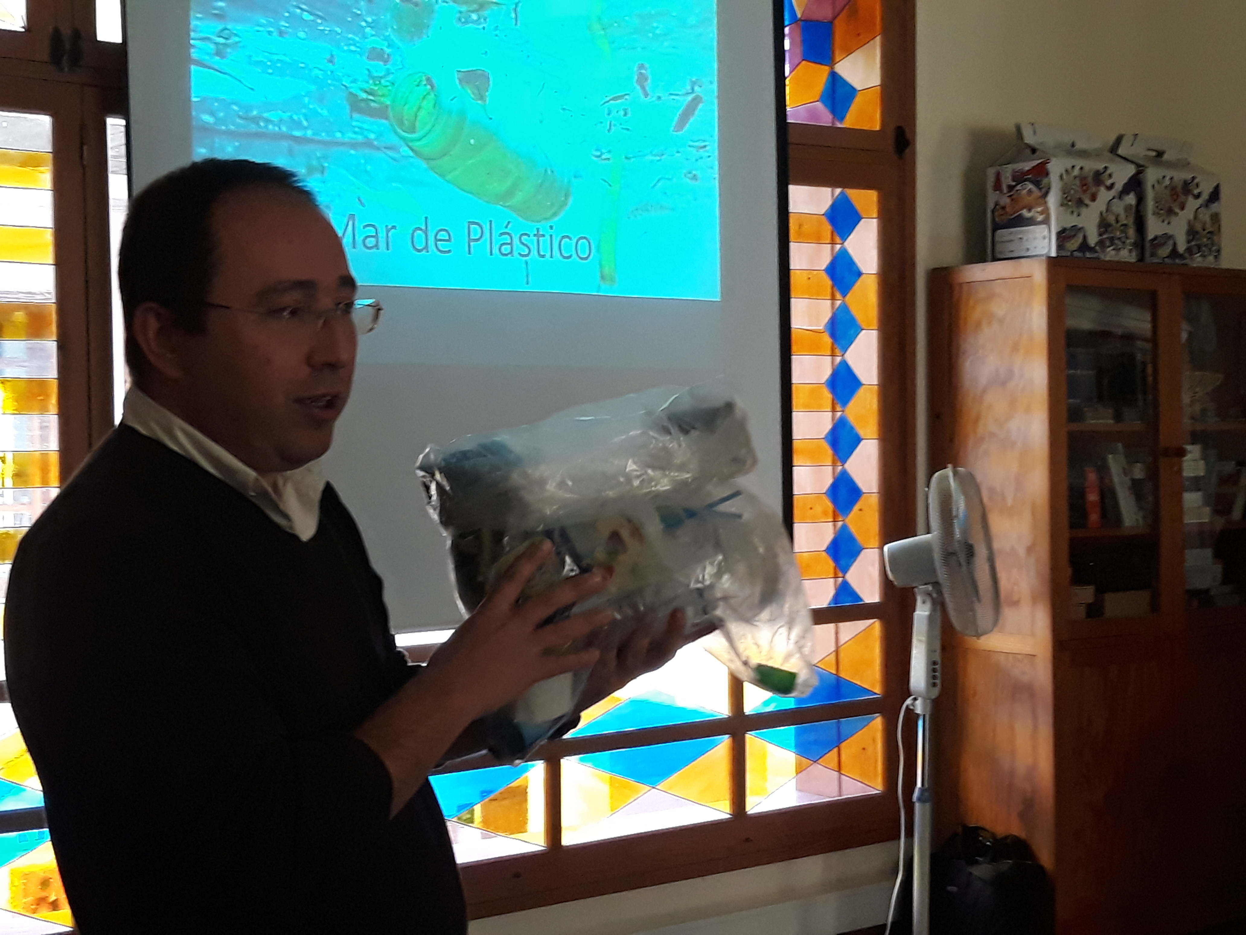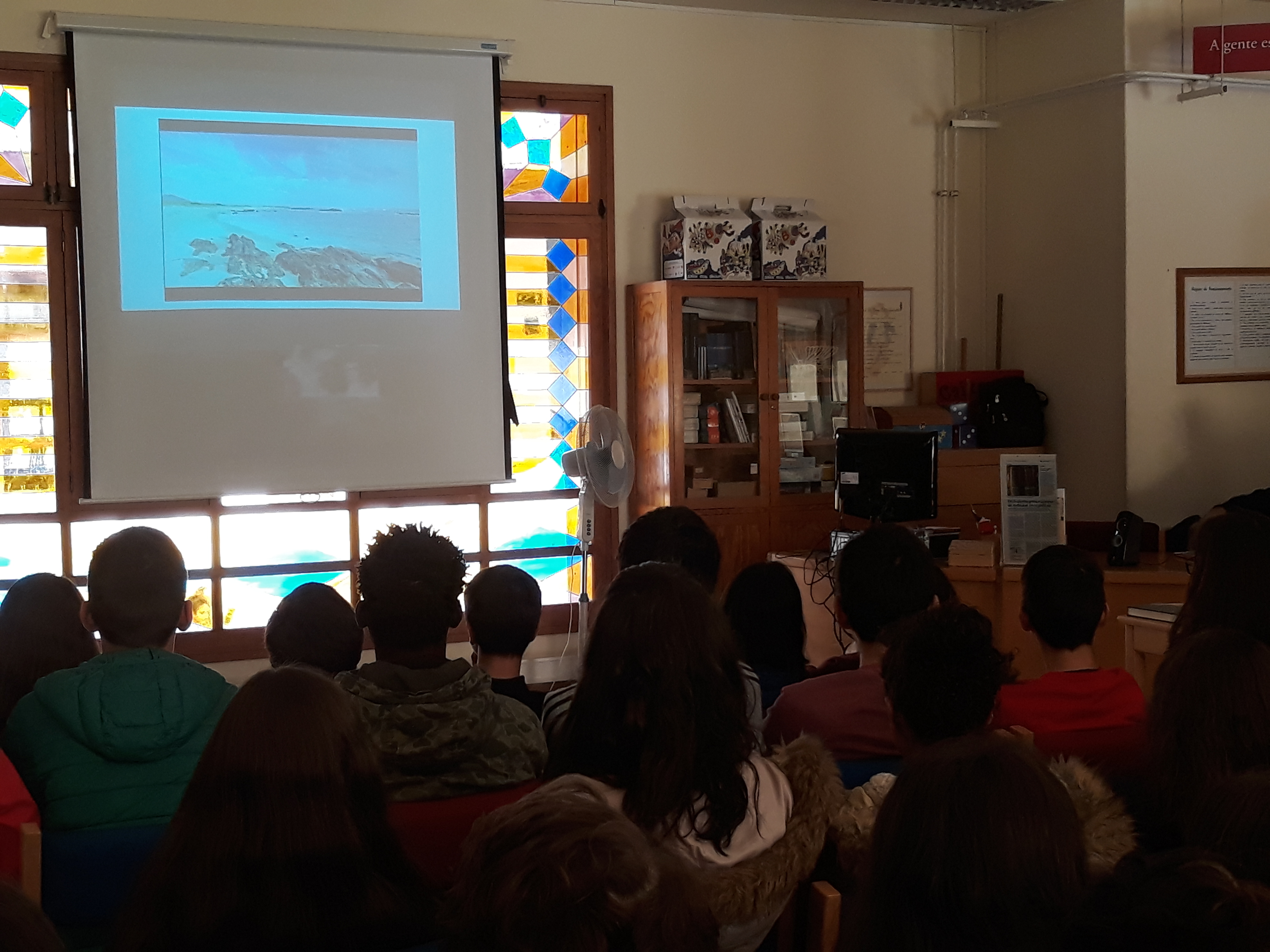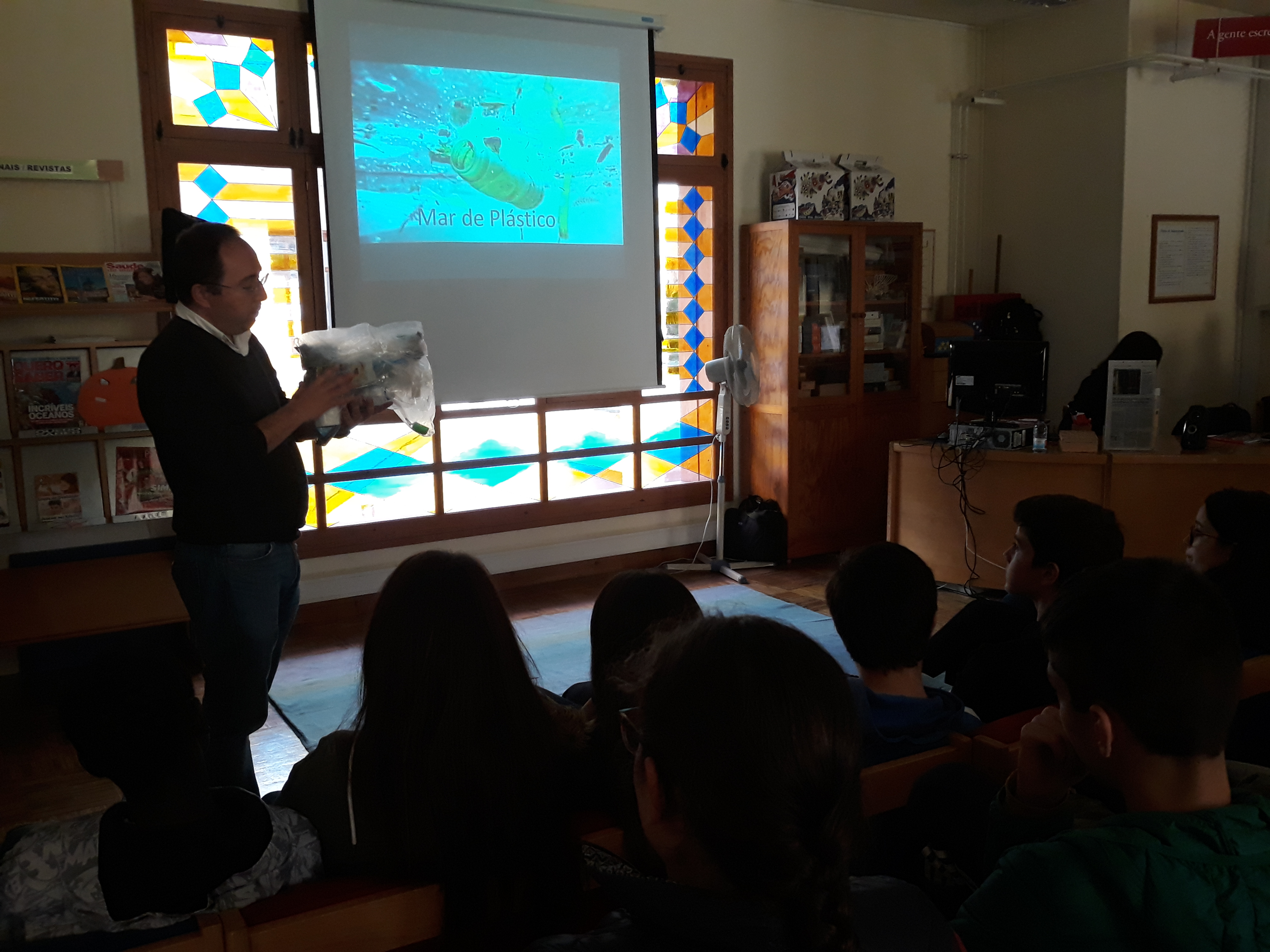 Palestra sobre os perigos que atualmente incidem sobre os oceanos, incidindo posteriormente na problemática dos plásticos por nos parecer ser a mais atual e relevante para os nossos alunos