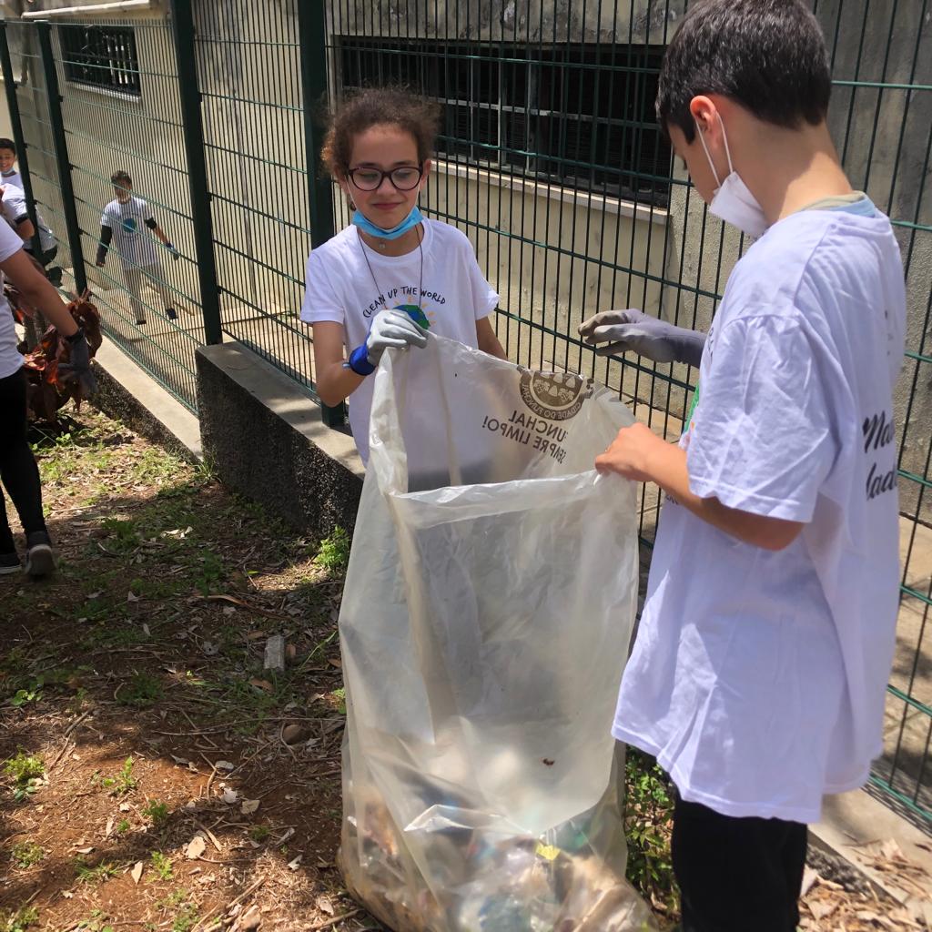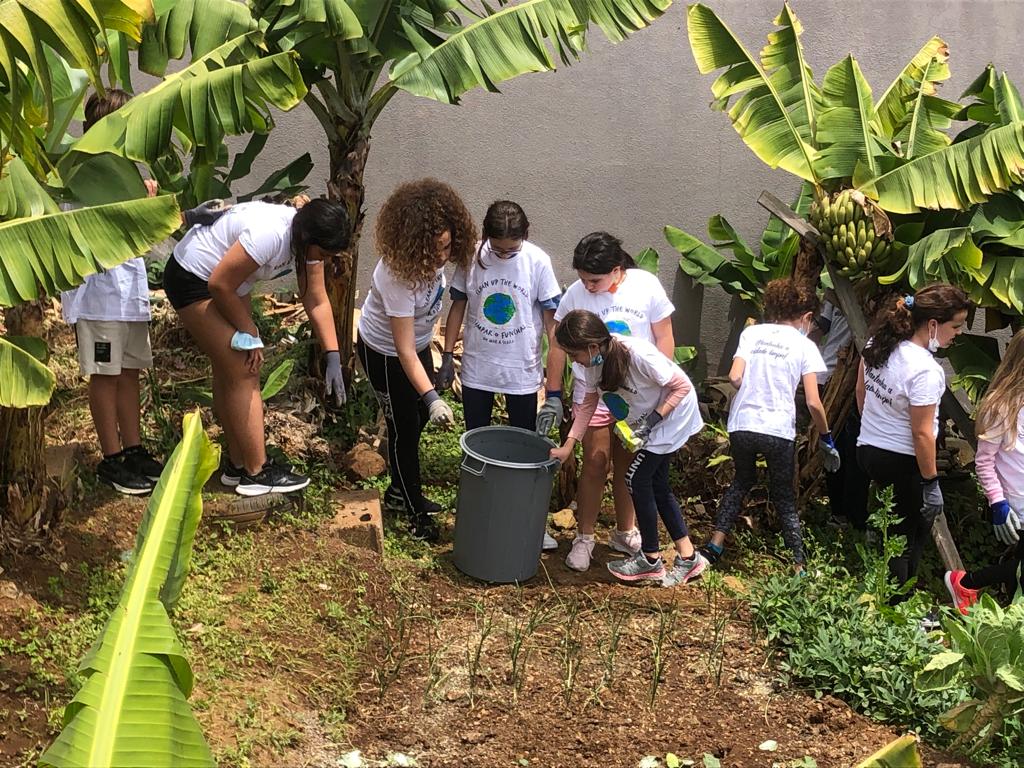 A turma do 5º3, numa aula de Formação Pessoal e Social, e alguns alunos do 1º ciclo, vestiram, literalmente, as t-shirts, disponibilizadas pela Câmara Municipal do Funchal no âmbito da atividade Clean Up The World desenvolvida no 1º período, e com o intuito de reutilizar as mesmas, os alunos foram desafiados a limpar os espaços ajardinados da escola que, inadvertidamente, alguns alunos deitam o lixo nos sítios incorretos.