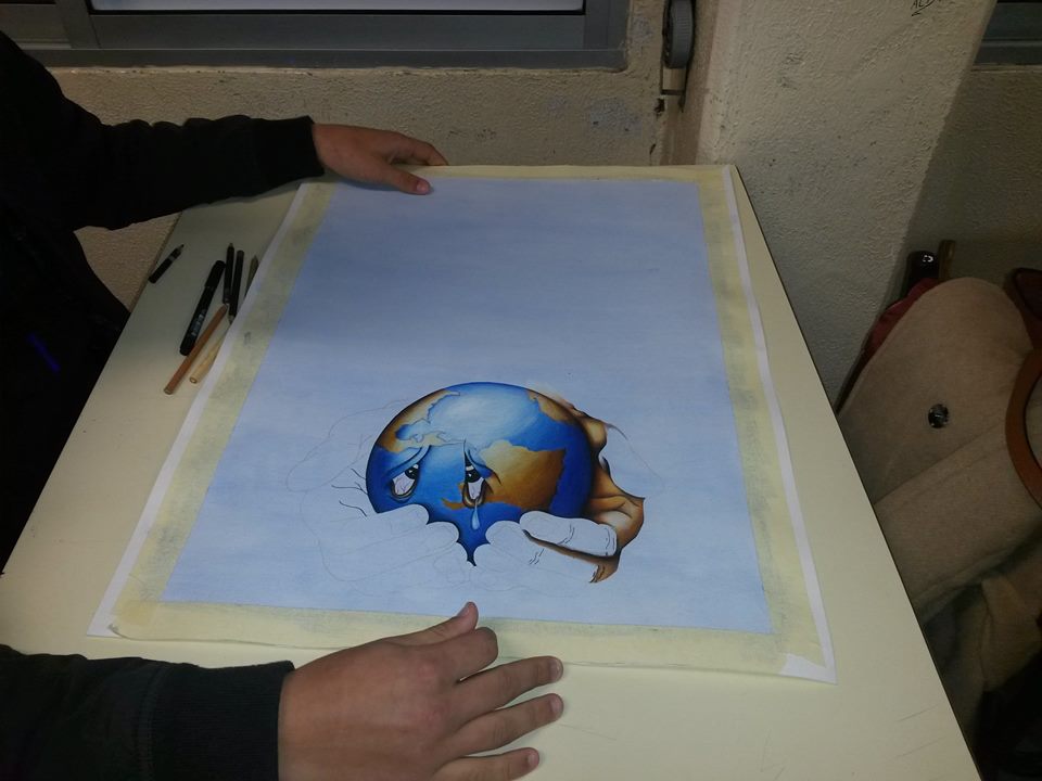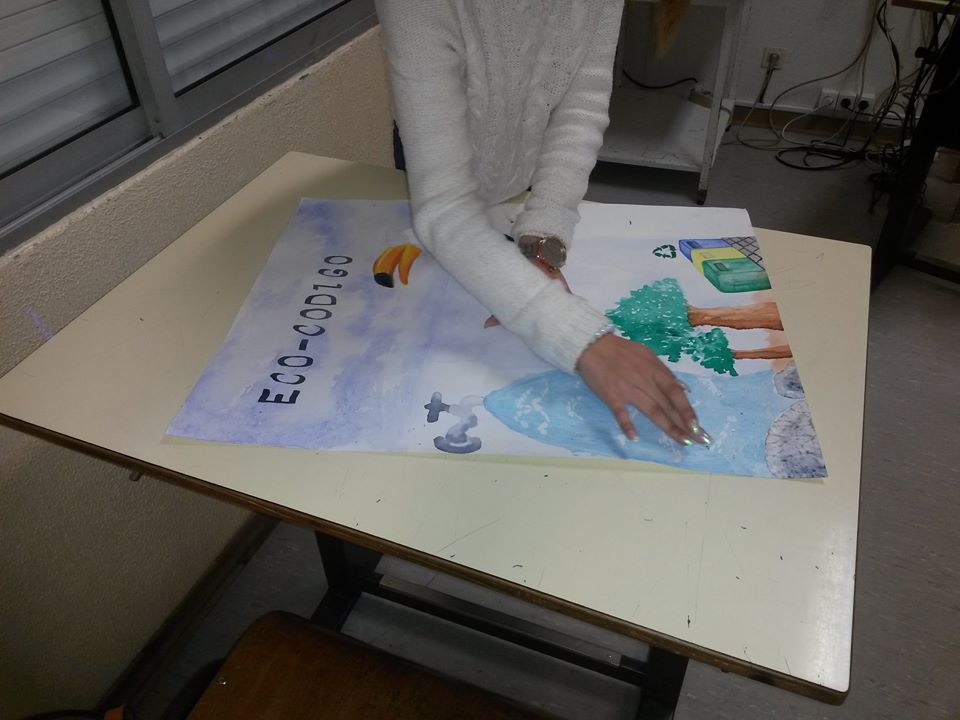 Arts students of Desenho A(Drawing) subject, are carrying out the making of posters of the 2017 Eco-Code of Secondary School Miguel Torga.