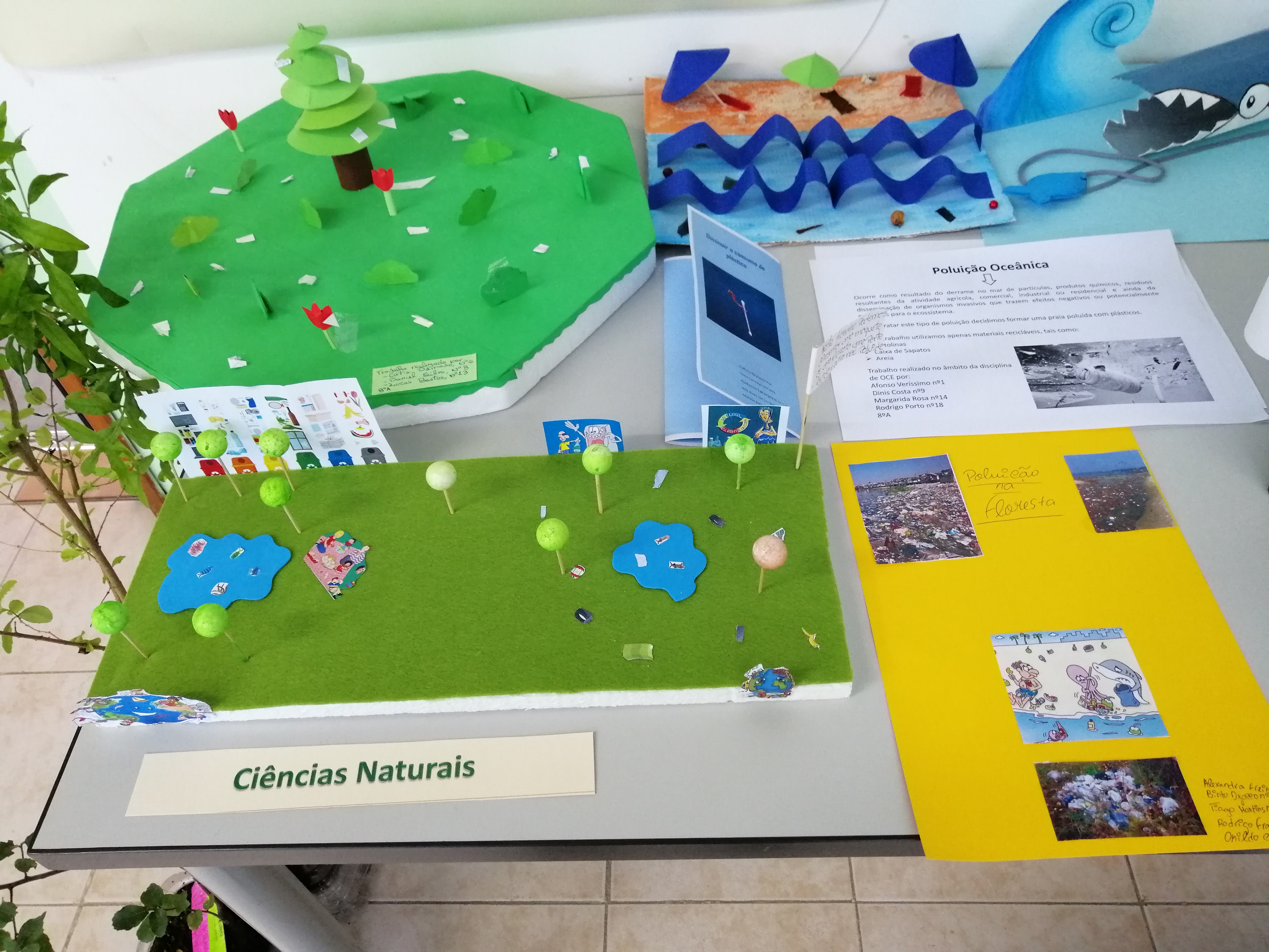 A exposição deu a conhecer algumas atividades que foram desenvolvidas pelas turmas do 8º ano durante o segundo período e que foram realizadas no âmbito de uma disciplina – Oferta Completar de Escola – na qual o trabalho e as atividades, durante este ano letivo, são exclusivamente destinadas às áreas ambientais – Programa Eco-Escolas. Na exposição aparece o Eco-código 2019, trabalhos sobre os plásticos no oceano, a poluição nas florestas. Em relação à nossa horta biológica e jardim da escola, os alunos construíram sementários, identificaram a flora mediterrância, plantaram em vasos, construídos a partir de garrafões de água reutilizados, algumas árvores para posterior plantação ou venda. No âmbito da disciplina de Física e Química, construíram instrumentos com materiais reciclados. Algumas atividades foram realizadas no âmbito dos Global Action Days mas iniciaram-se ainda no mês de março (designadamente as atividades da horta e jardim) por questões de calendário escolar.