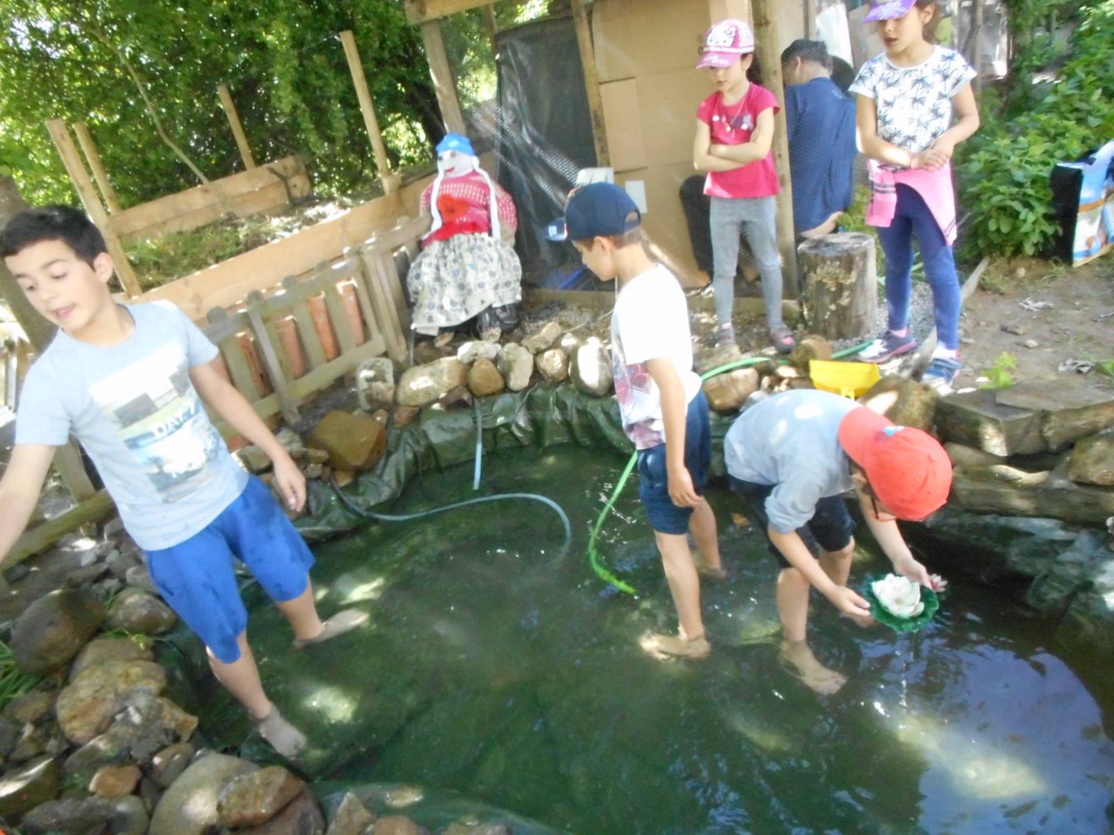 Arrancar ervas daninhas na horta e recreio; plantar diversas plantas, hortícolas, frutícolas, aromáticas e ornamentais; revolver o composto e colocar algum na horta e árvores do pomar; limpar e mudar a água do lago que serviu para regar a horta; pintar sofás construídos pelos pais com paletes; subir com as crianças à casa da árvore e lanchar com todos os participantes, broa com compotas, confecionadas na escola, e infusões de ervas aromáticas da nossa horta.
