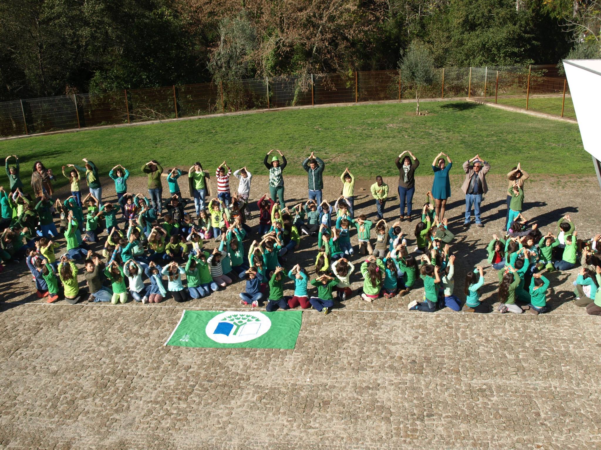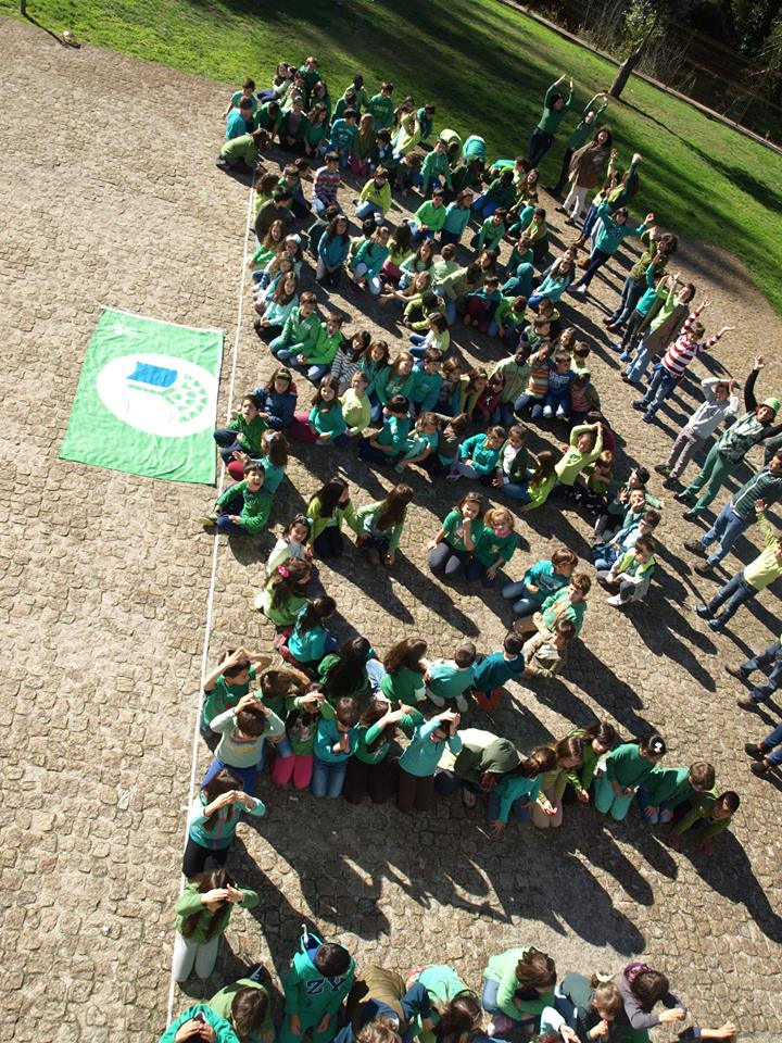 – Disposição de alunos e professores no recreio da escola formando a palavra ECO – ESCOLA;