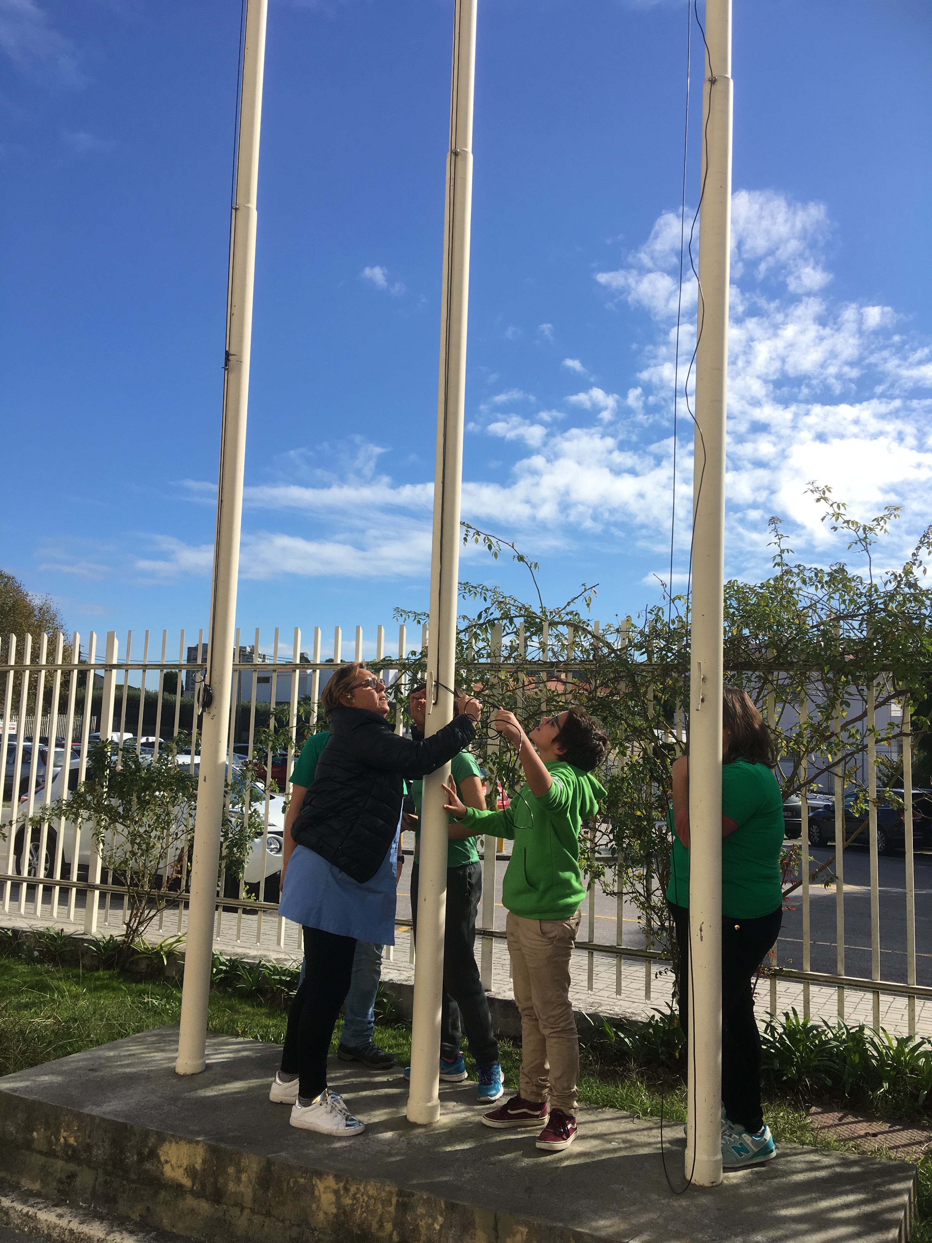 - Reunião na entrada da escola de alunos, professores, auxiliares de ação educativa, o Sr. Diretor do Agrupamento e o Sr. Presidente da Junta de Freguesia, para realizar ao hastear da Bandeira Verde do Eco Escolas.