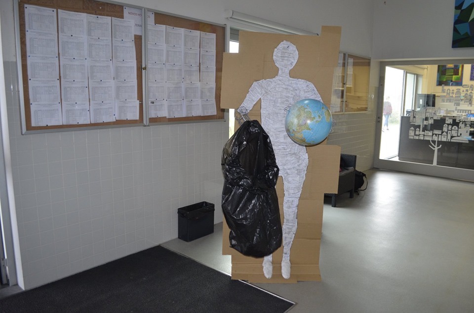 2- Escultura com materiais reciclados no espaço do átrio da escola (12ºE)