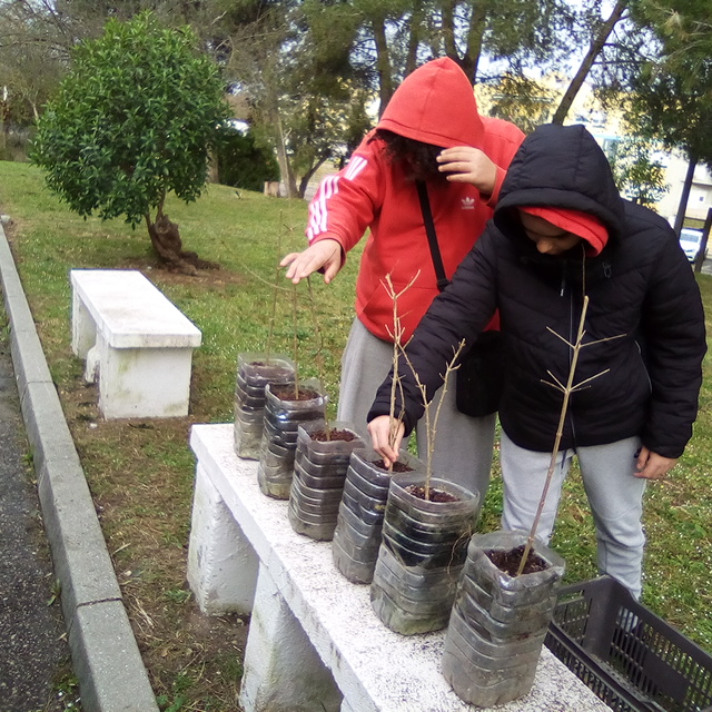 No mês de fevereiro as turmas de 8.º ano aumentaram o número de espécies vegetais do viveiro de plantas mediterrânicas da escola, utilizando processos biológicos de germinação de sementes e de produção de plantas por estacaria aprendidos nas aulas de Ciências Naturais. O solo utilizado nos vasos foi produzido na escola por compostagem de resíduos vegetais.