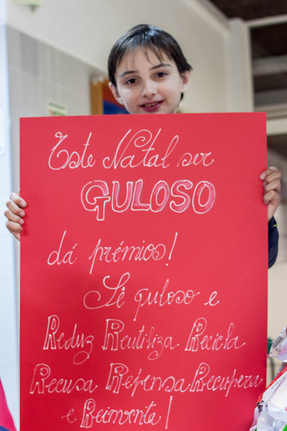 Para tal, foi pedido aos alunos que colocassem em cartolina vermelha uma palavra positiva sobre a Proteção do Ambiente.