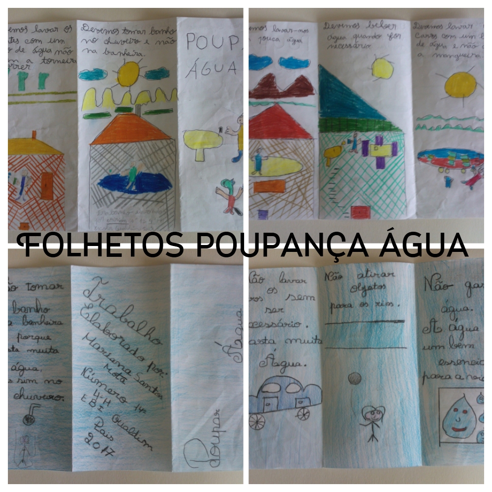 Os alunos realizaram variados folhetos de sensibilização por forma a incentivar a poupança de água potável. Estes folhetos informam para comportamentos que se devem adotar para assim se poder poupar água.