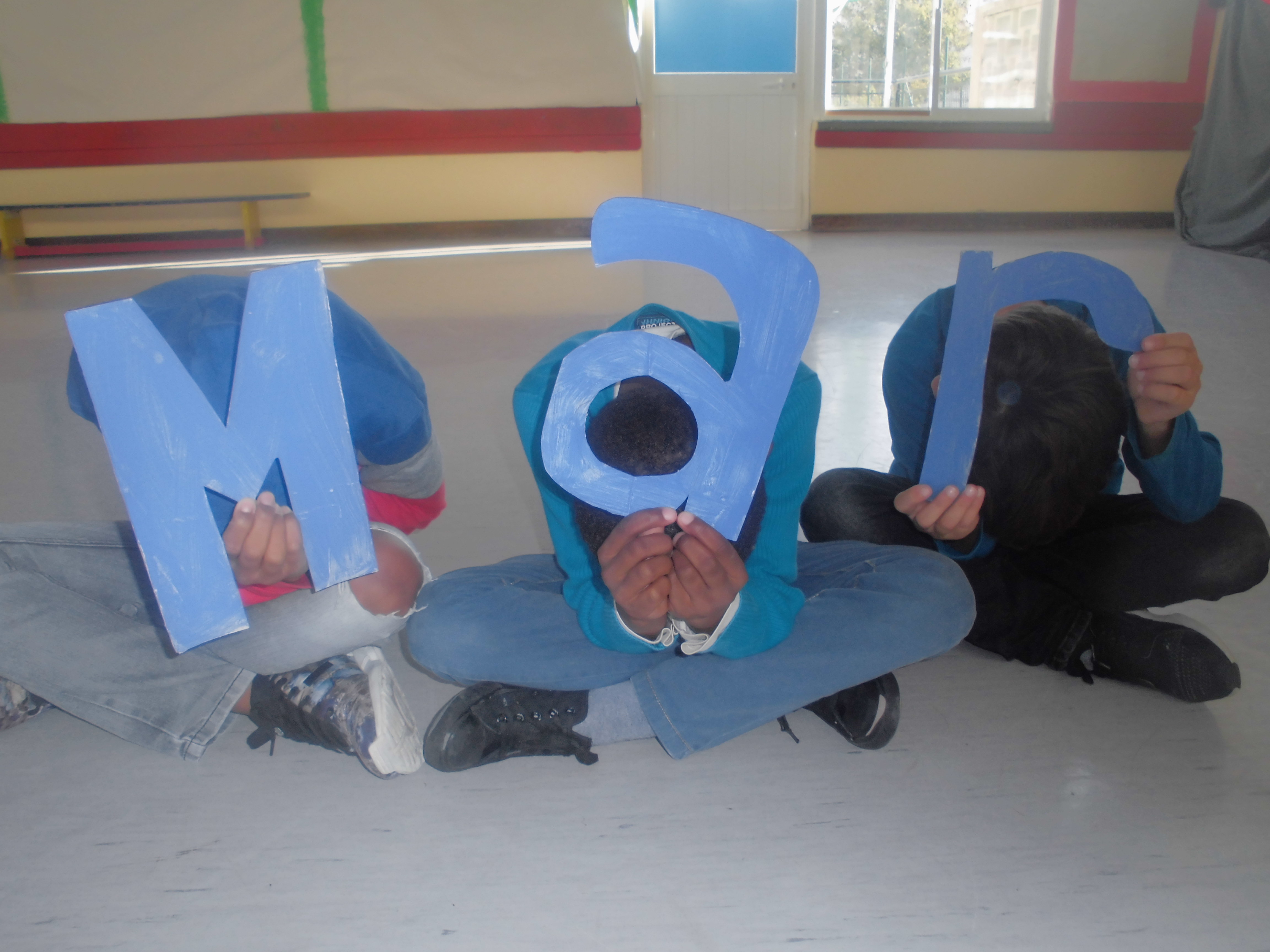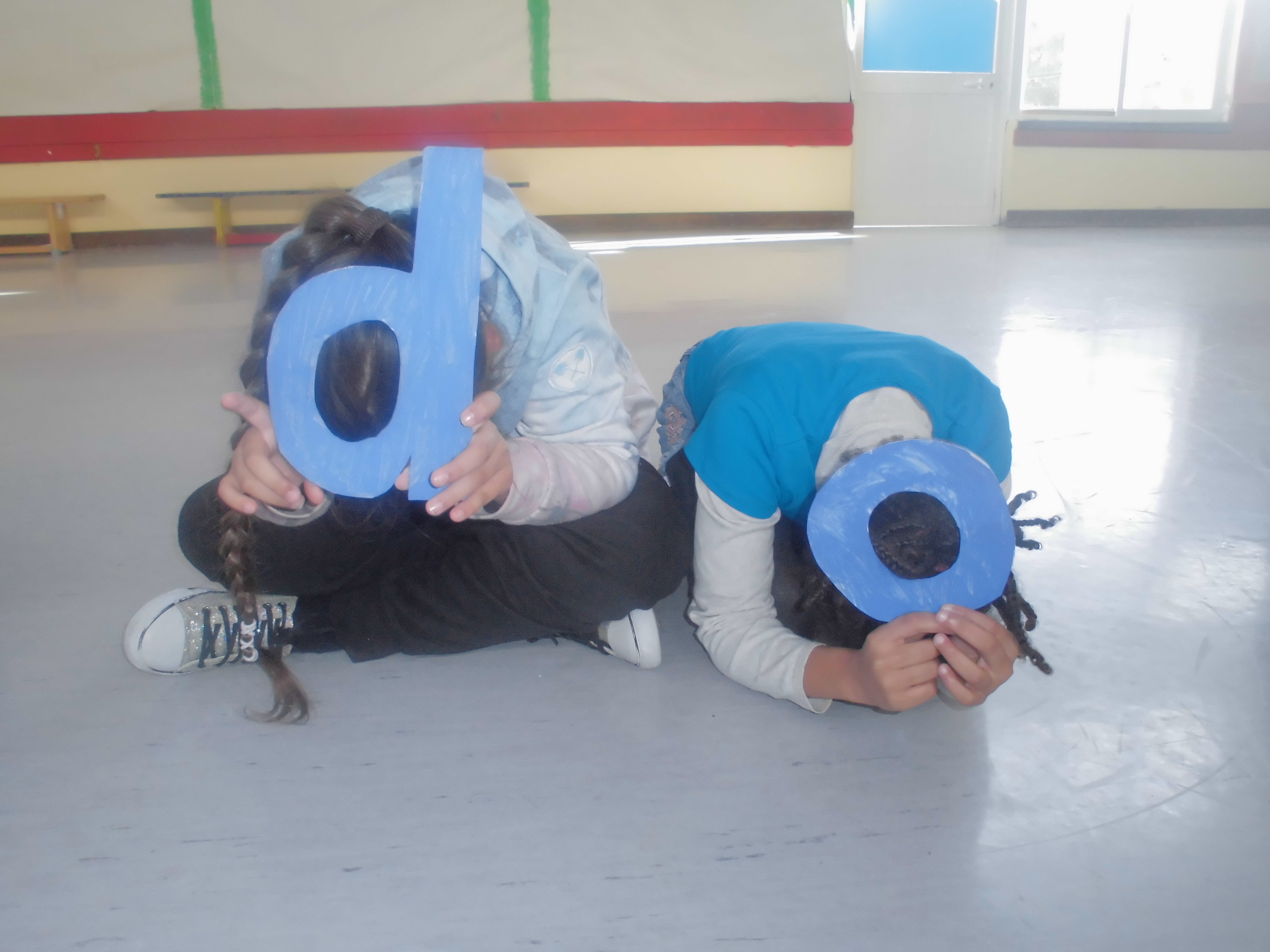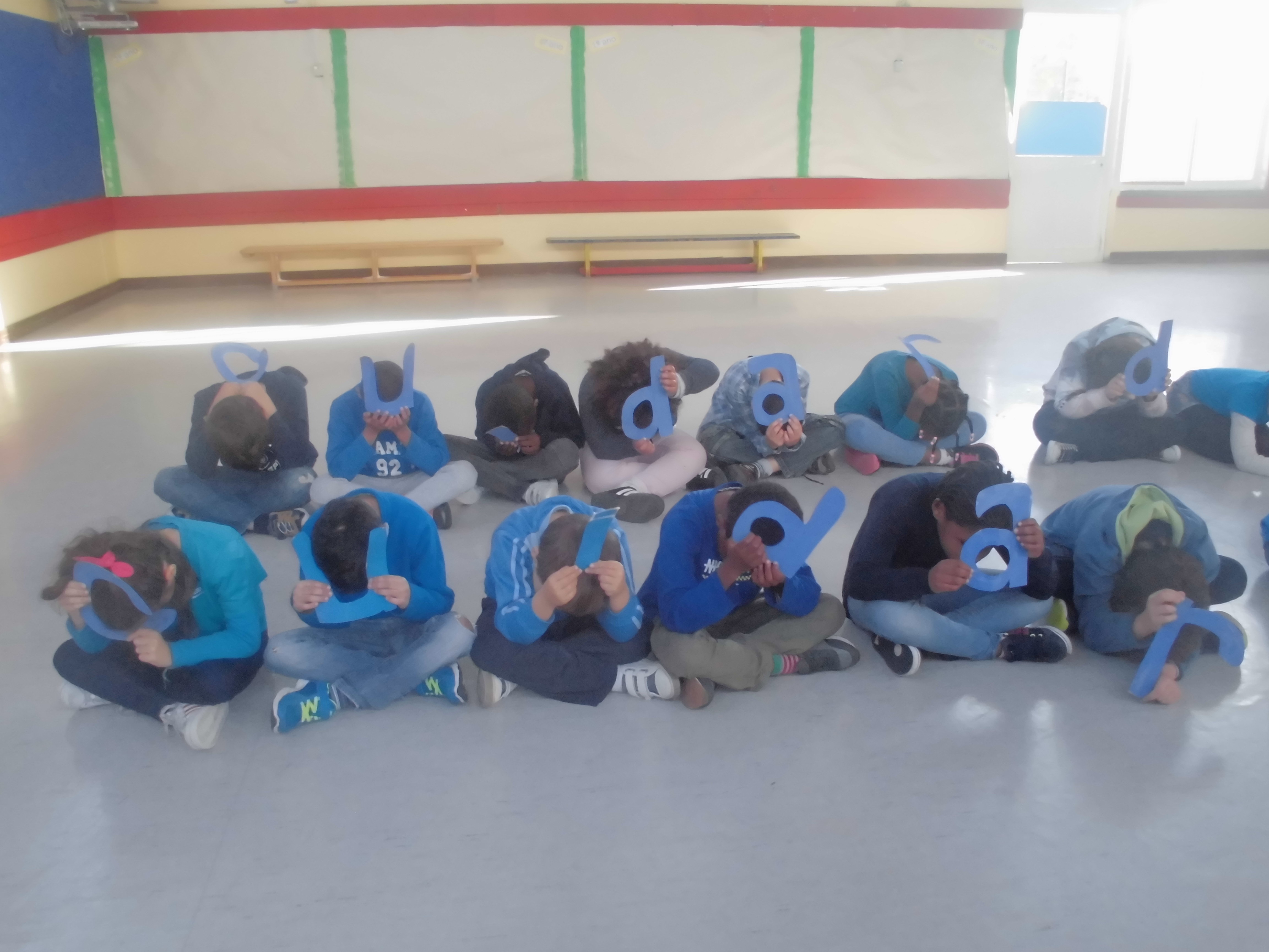 Cada aluno em posição de “conchinha” mostrava uma letra ou sinal de pontuação de “Cuidar do Mar é… cuidar do nosso Lar!”.