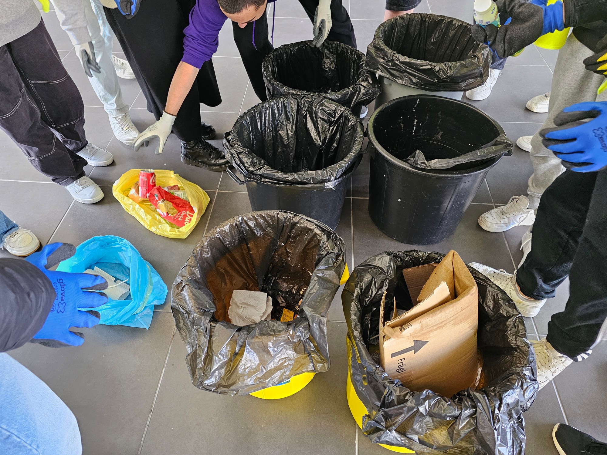 Os alunos tomaram consciência sobre a quantidade de resíduos que são incorretamente depositados ou colocados no chão dentro da escola.