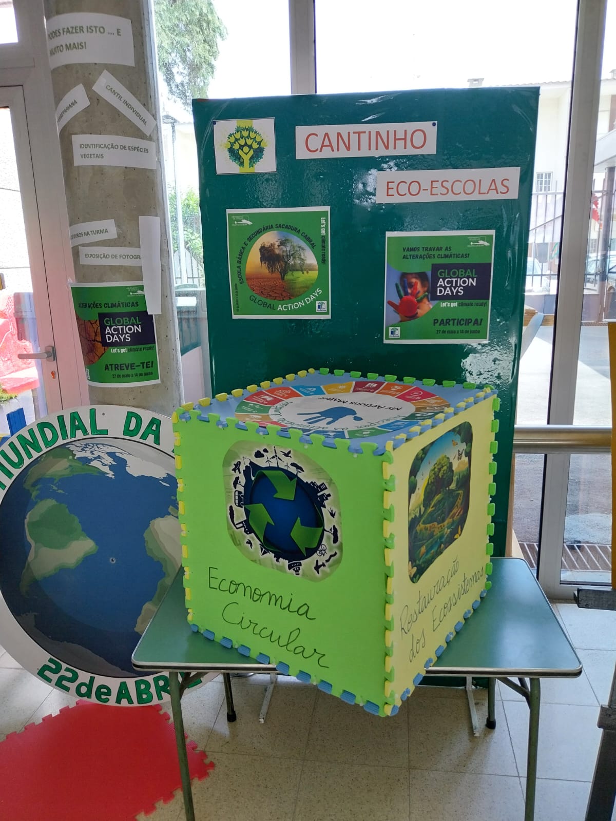 Em simultâneo, decoravam um cubo mais pequeno que seria exposto apenas quando a turma tivesse concluído o desafio que lhe fora lançado, ou seja, efetuado a ação concreta pelo planeta Terra.