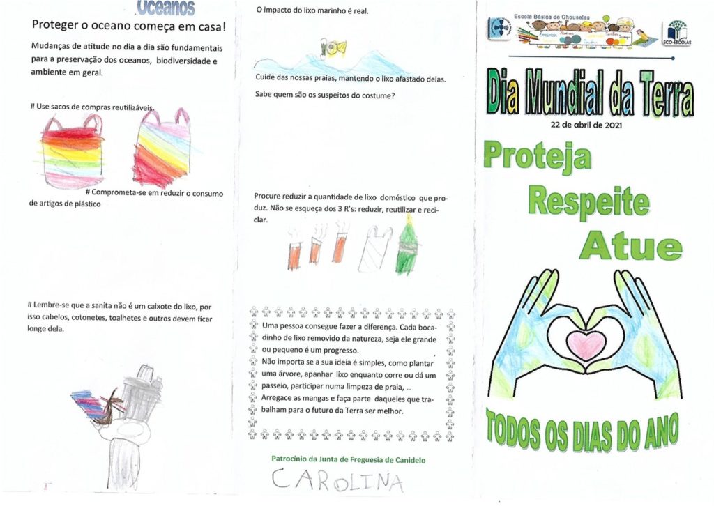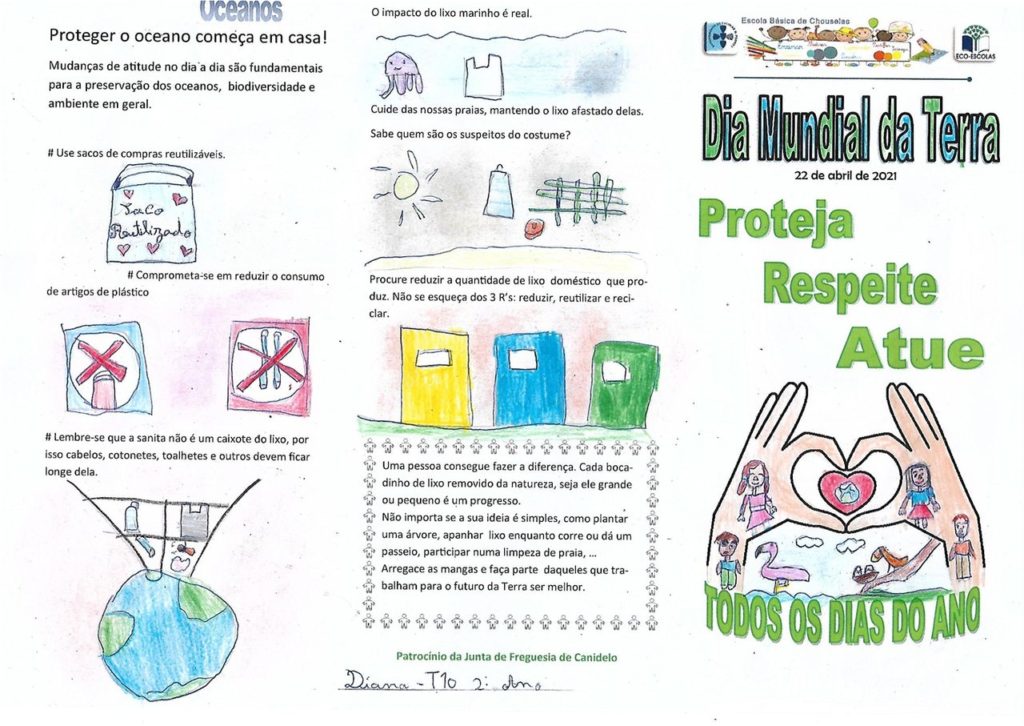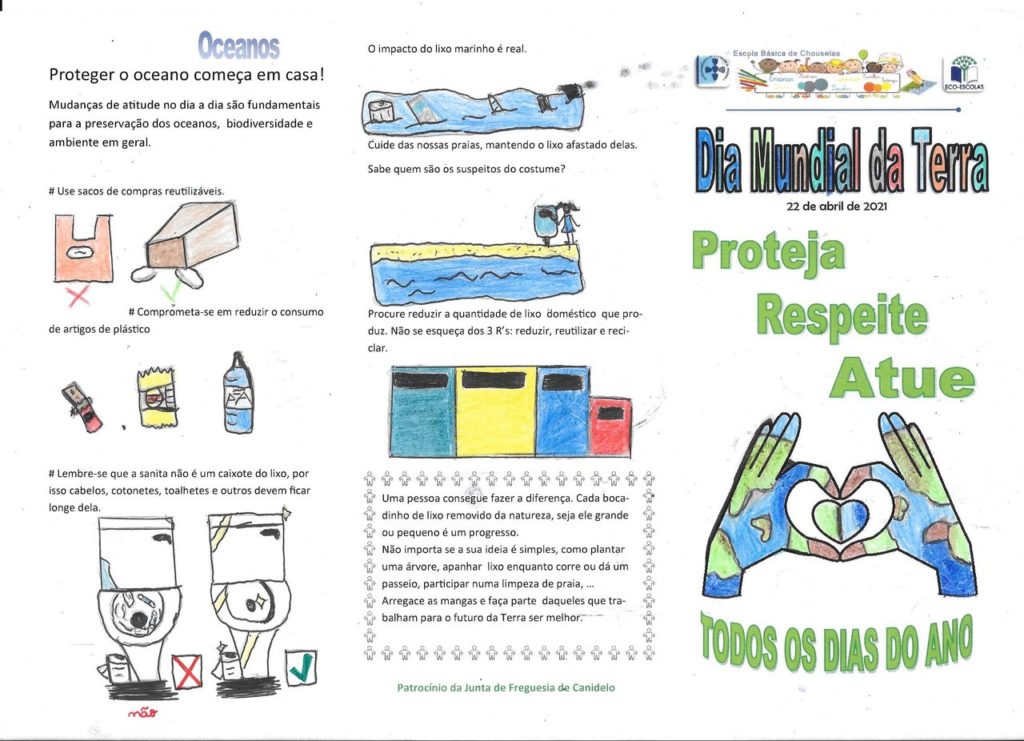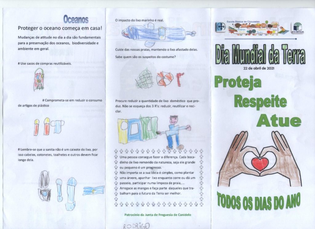 Também decidimos assinalar este dia com a elaboração de um Folheto Informativo “Proteja, Respeite, Atue Todos os Dias do Ano”, no qual se faz um alerta para a necessidade de mudança de hábitos para proteger o nosso planeta, as Florestas, os Oceanos, a Biodiversidade, a Água.
