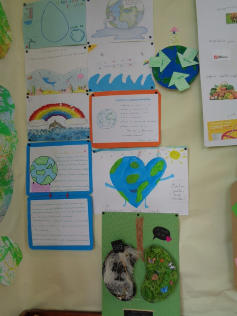 Nas duas semanas que antecederam o Dia da Terra, a nossa escola recebeu a exposição “Os Suspeitos do Costume” que teve um forte impacto nos alunos. O envolvimento das famílias já havia sido lançado com um desafio: realização de um trabalho sobre o planeta Terra com mensagens de alerta à proteção e preservação do mesmo. É com orgulho que podemos dizer que a adesão foi significativa e com os trabalhos realizados fizemos uma exposição que foi inaugurada no Dia da Terra.