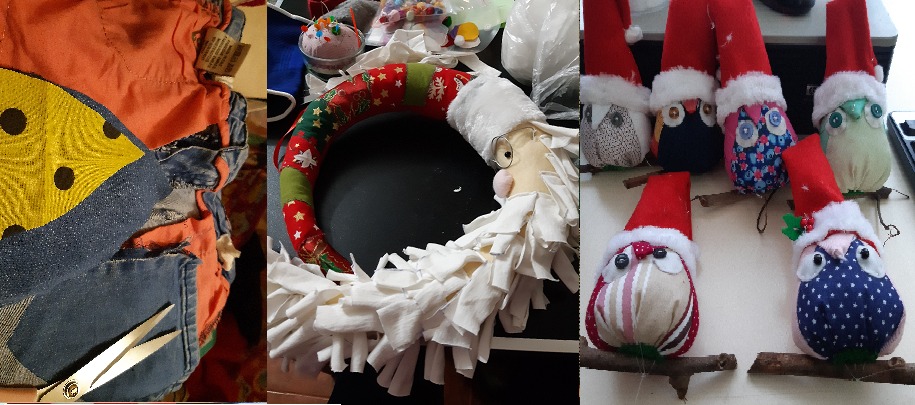 Alunos dos 2.º e 3.º ciclos criaram peças para a decoração natalícia da Escola, dando vida a materiais que de outra forma seriam resíduos. Utilizaram, essencialmente, tecidos resultantes de peças de roupa inutilizada e embalagens de plástico que serviram de moldes.