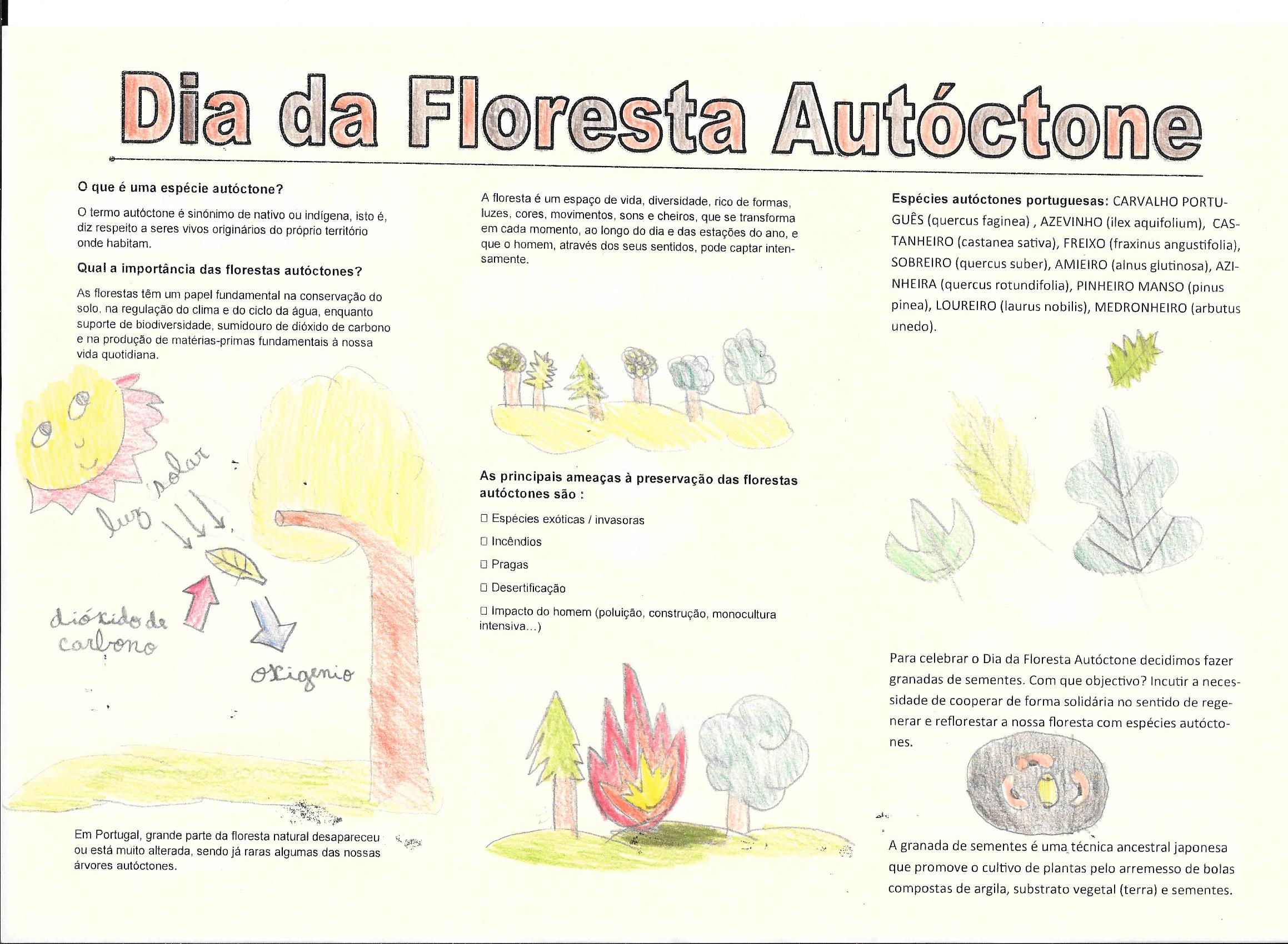 Aproveitando para celebrar o Dia da Floresta Autóctone, fizemos granadas de sementes. Depois elaboramos um folheto informativo sobre o tema.