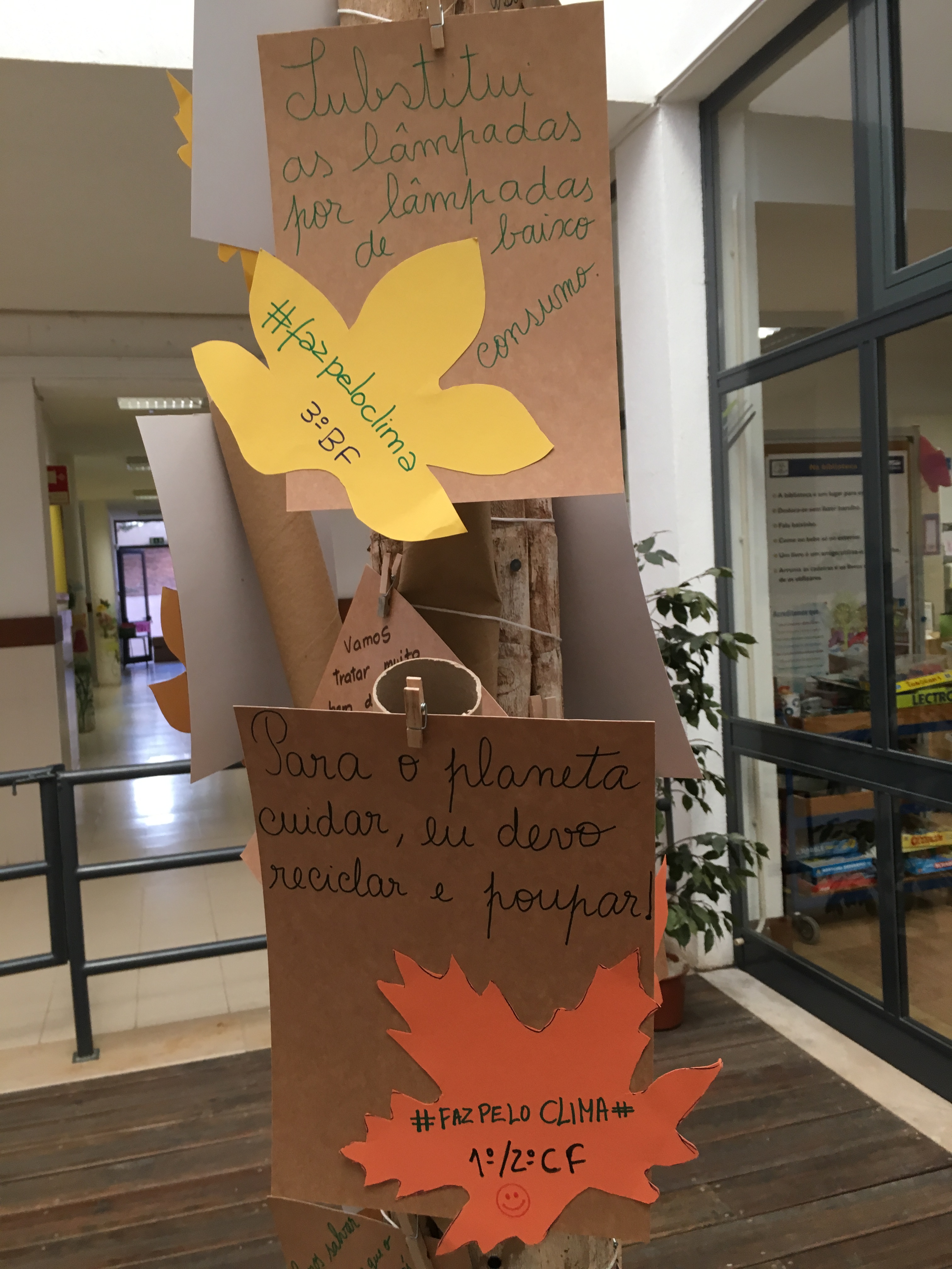 Na EB1/JI de Fitares, o dia 27 de setembro iniciou-se com um encontro de todos os representantes de grupo/turma, por forma a que ficassem informados acerca do que se pretendia com a “Greve Climática Global”. Todos se comprometeram a iniciar um período reflexivo, que deveria ser alargado aos seus colegas e respetivas famílias, com o intuito de encontrar ações que todos pudessem pôr em prática para proteger o nosso planeta. Seguindo as propostas e inspirados no “Global Actions Days”, simbolizamos este momento com a colocação da nossa bandeira eco escola a meia haste. Seguiram-se uma série de atividades ao longo desse dia: cuidámos na nossa horta, melhorámos o nosso compustor, construímos e colocámos no exterior diversos comedouros para os nossos passarinhos, fizemos jogos de chão com giz, desenhos com frases inspiradoras e construímos a sinalética para a nossa horta. Levámos esta experiência para o fim de semana e falámos sobre ela com as nossas famílias. Assim, na 2ª feira seguinte (dia 30 de setembro) construímos a nossa árvore dos compromissos, onde cada grupo/turma participou com a sua intenção. Sentimo-nos ainda mais preparados para continuar esta caminhada ao longo do ano letivo. #fazpeloclima #ecoescolasfazpeloclima #ecoschools #globalactiondays