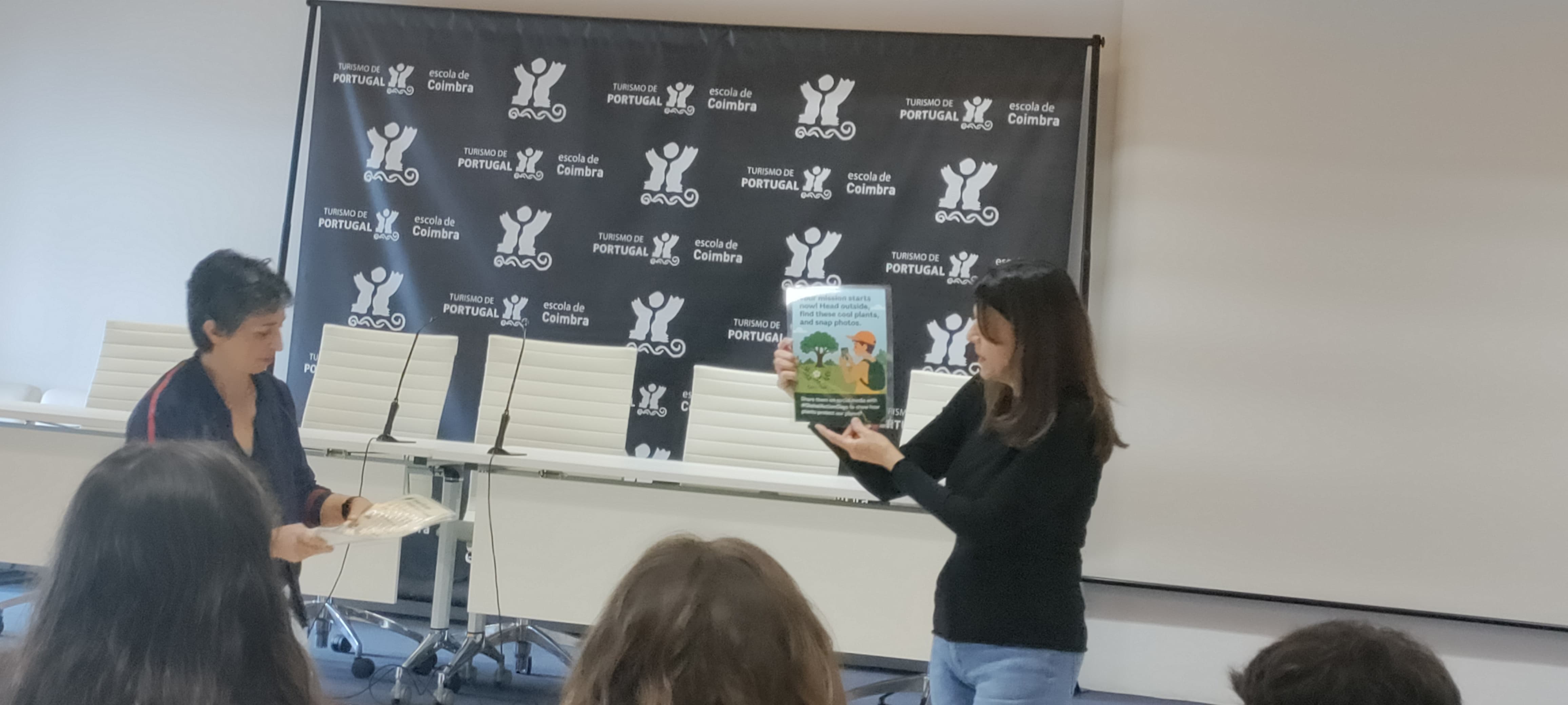 A Arquiteta paisagista, doutoranda na Universidade de Coimbra, Sharared Madanian, Iraniana, aluna da escola do programa Integrar, preparou para os alunos do 1º e 3º ano, uma sessão excelente sobre as diversas funções das plantas, enquanto protetoras do ambiente, no dia 25. O mau tempo não permitiu tirar as fotografias das plantas, no final, conforme planeado. Mas, em vez disso, possibilitou aos nossos alunos a oportunidade de colocar muitas mais questões à querida Sharared. Ela preparou uns posters fantásticos para a sessão. Falta dizer que tudo isto aconteceu durante uma aula de inglês, permitindo praticar a língua ou facilitar a comunicação.