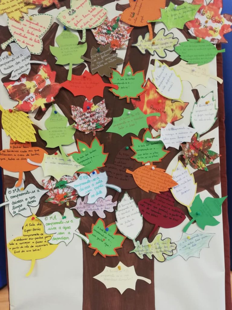 Como é nosso desejo continuar a cuidar da Casa Comum – o Planeta Terra, todas as salas de aula do Colégio Santa Ana, anunciaram as mudanças de hábitos que vão passar a ter, escrevendo numa folha o compromisso e criando uma “Árvore dos Compromissos”.