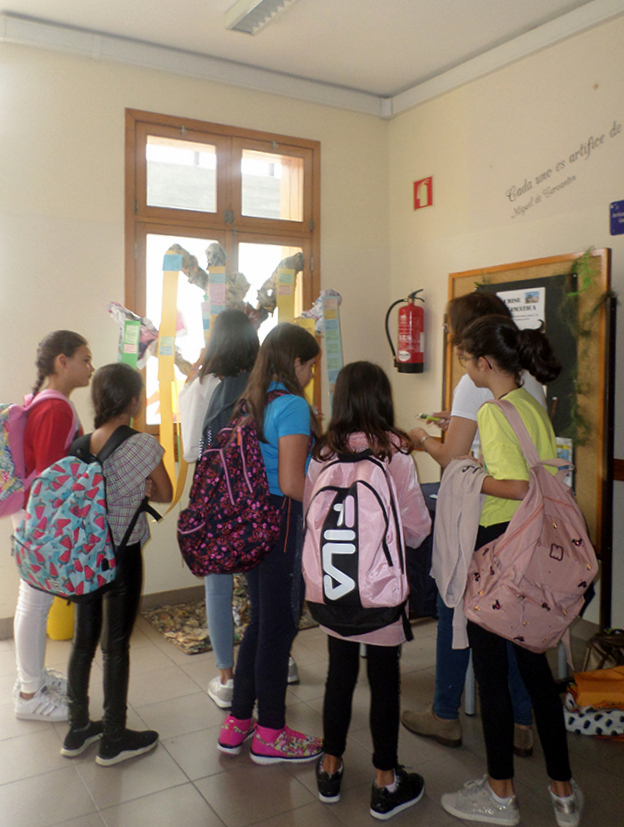 It was suggested to all teachers, students, operational assistants that on the morning of September 27th, they could register in the TREE OF COMMITMENTS a possible action that they would undertake and help to reverse the situation. current climate of our Planet by filling in a document near the tree. This tree was located near the School Library and Teachers’ Work Office at EB 2/3 of Celeirós.