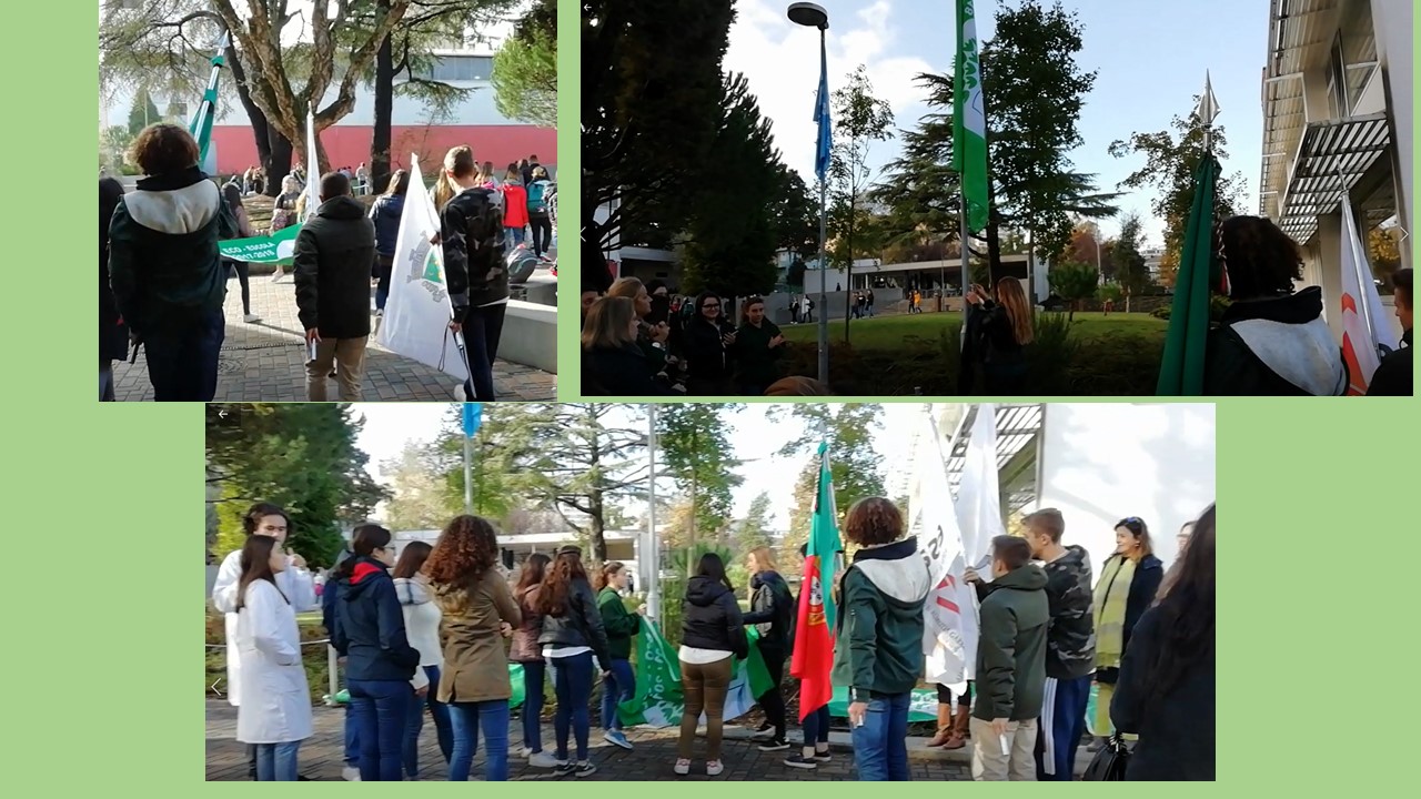 No dia 7 de novembro alguns alunos da turma 12º G levaram a Bandeira Eco-Escolas desde a Direção da Escola até ao local do hastear no intervalo da manhã e hastearam a bandeira. A Associação de Estudantes colocou música. O momento foi divulgado desde o dia anterior no GIAE da escola com um apelo para o vestuário incluir uma peça de cor verde.