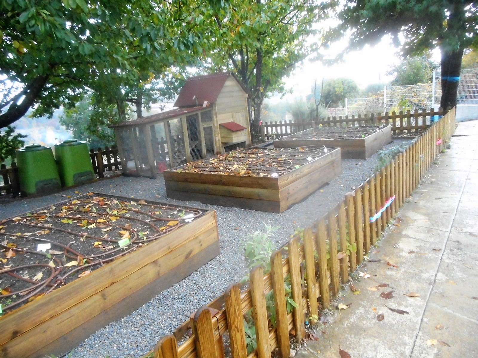 Requalificamos o espaço da horta biológica da escola que estava degradada, com a madeira da cerca apodrecida com a verba atribuída no Orçamento Participativo da Câmara a que a escola se candidatou. Montamos um galinheiro novo e uma estufa grande onde se pode trabalhar de pé. Construímos um casal de espantalhos a que as crianças deram o nome de Joaquim e Joaquina. O pai de uma das nossas crianças compôs uma música com letra adequada que todos cantamos no dia 7 de novembro.