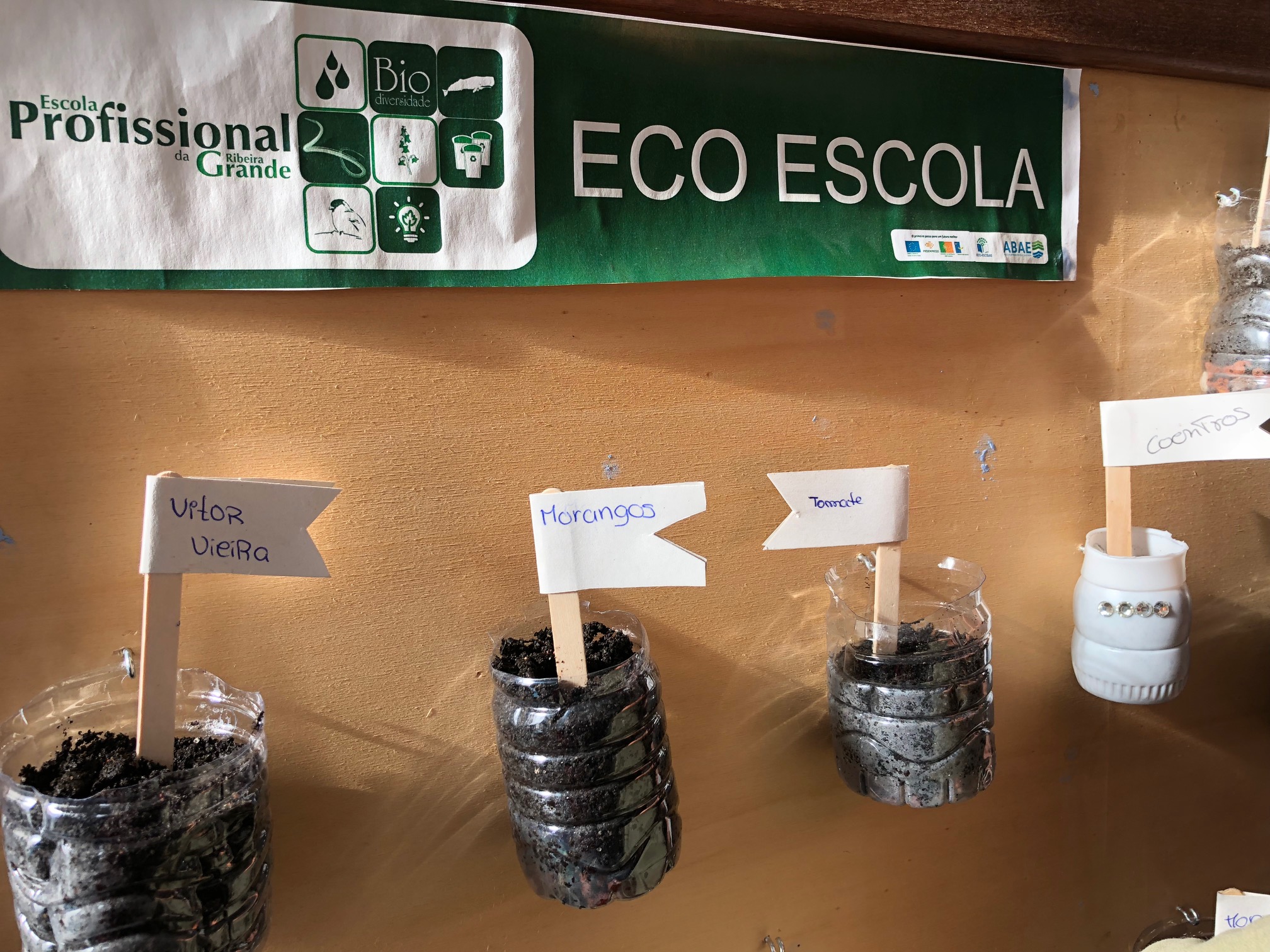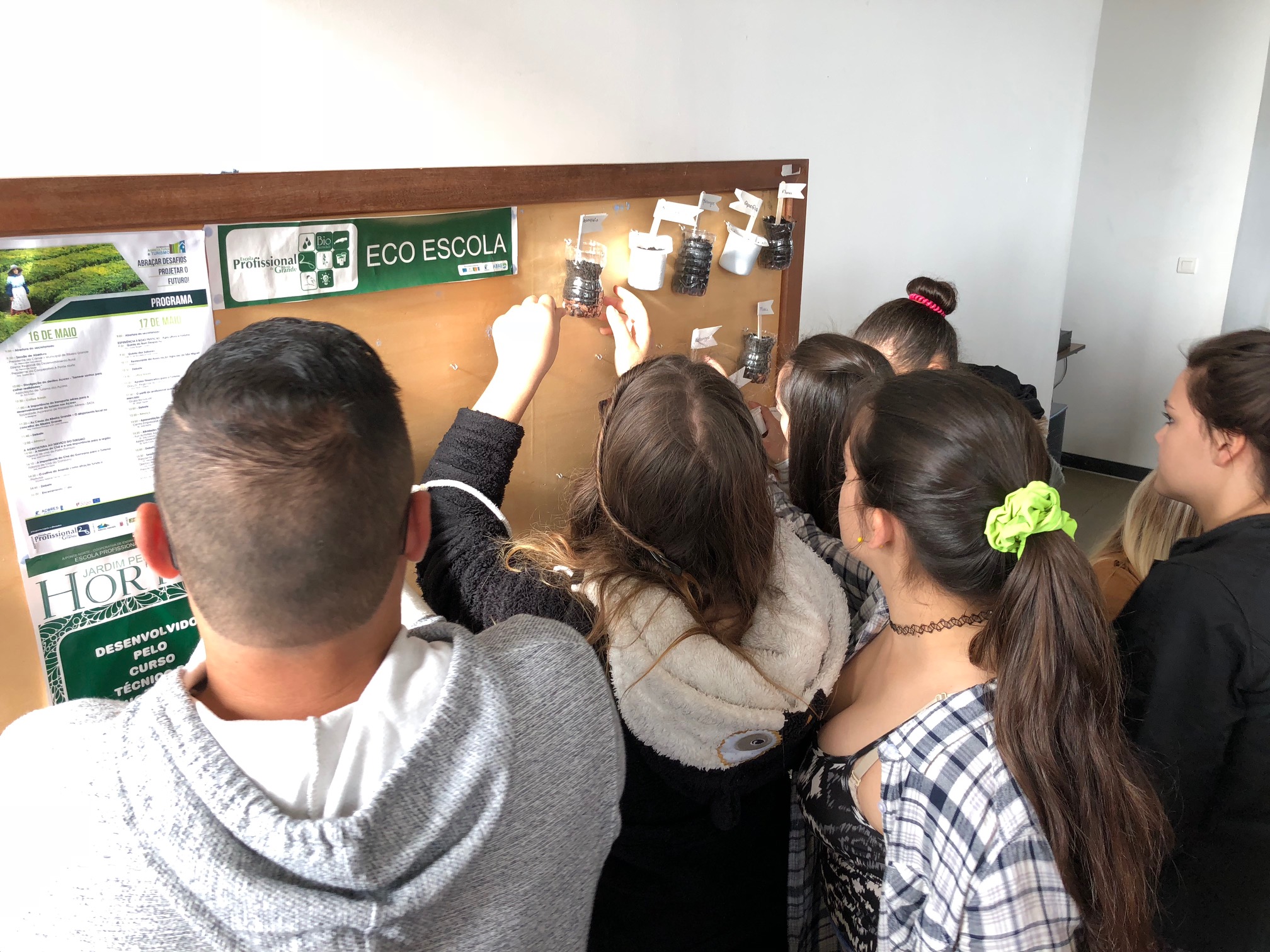Esta atividade foi implementada em parceria com o projeto Eco-Escola, tendo por objetivo principal a construção de uma horta vertical de ervas aromáticas e vegetais. Reutilizou-se garrafas de água e copos de iogurte para a construção dos vasos, paus de gelado e papel reciclado para elaboração das etiquetas. Esta atividade foi organizada por uma turma de 25 alunos e 3 professores do Curso Técnico de Receção, sendo supervisionada pelo coordenador do projeto Eco-Escolas Nuno Gaudêncio.