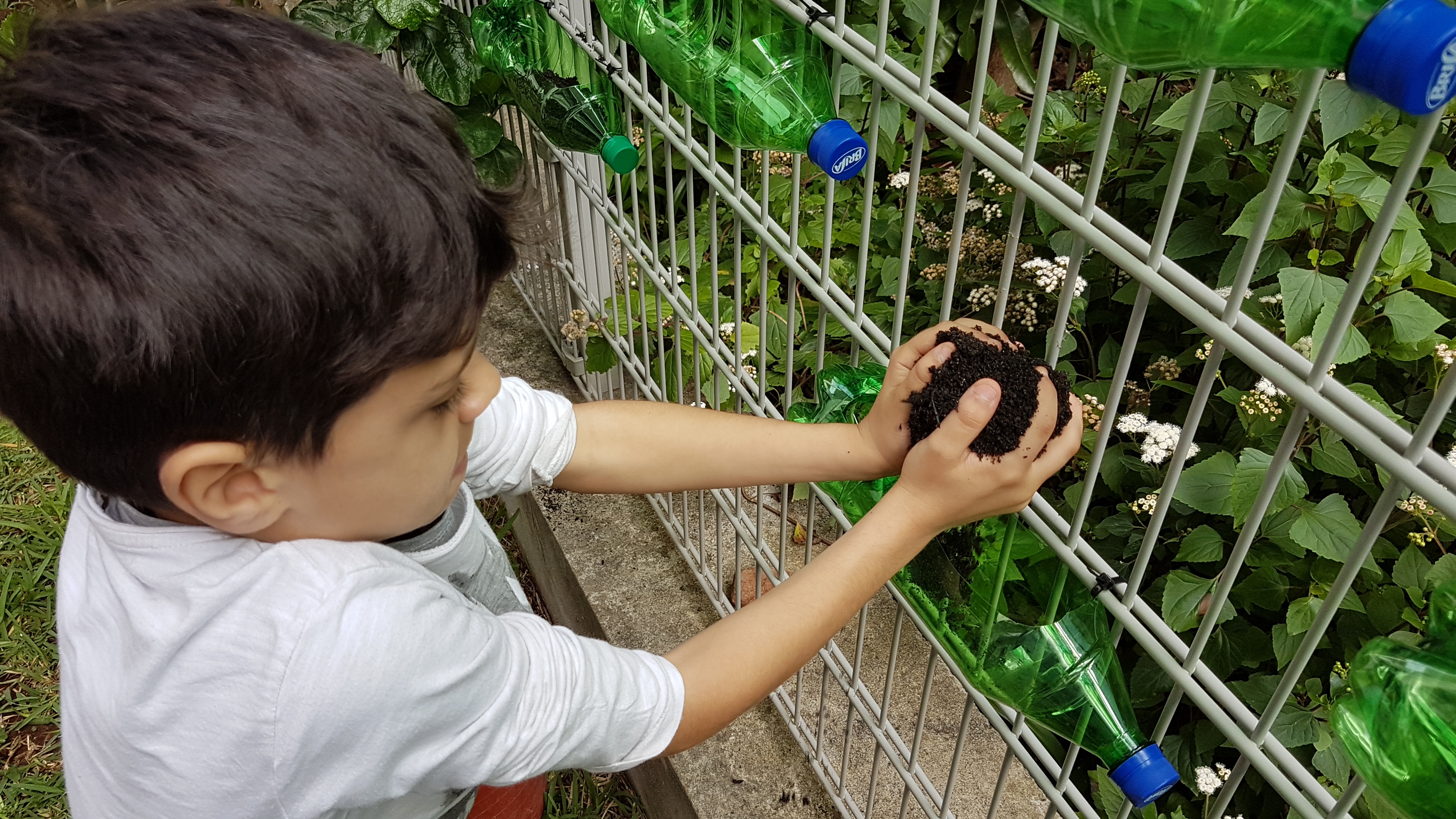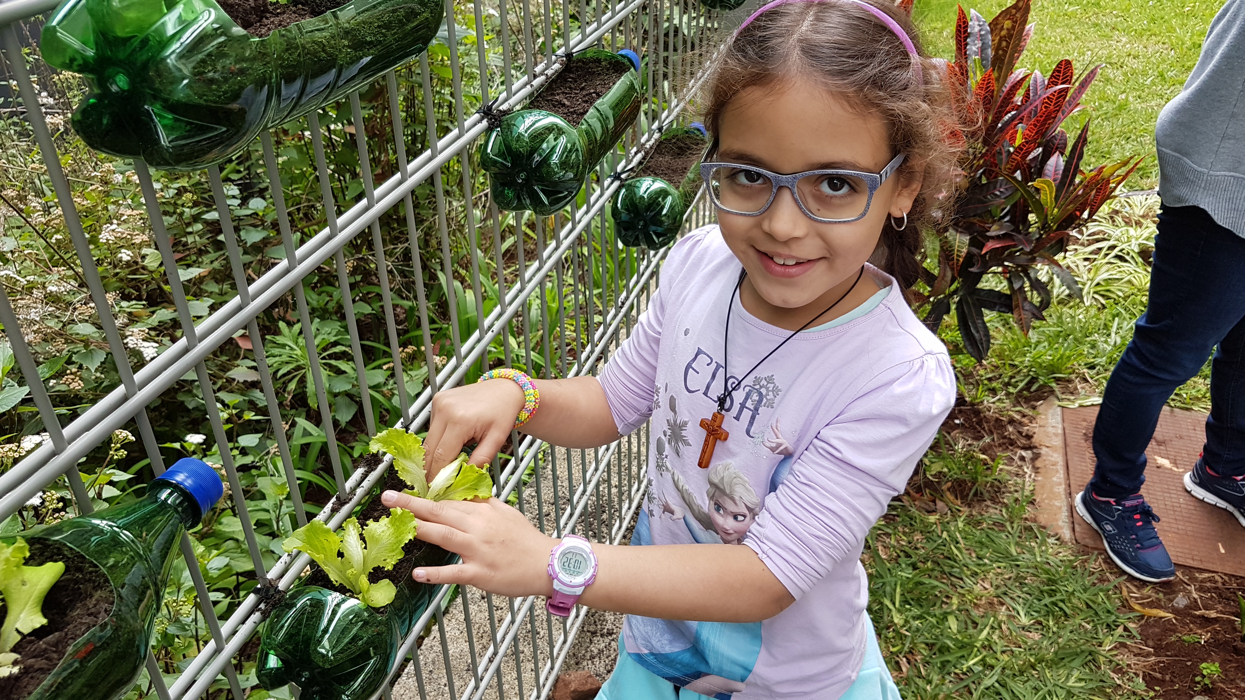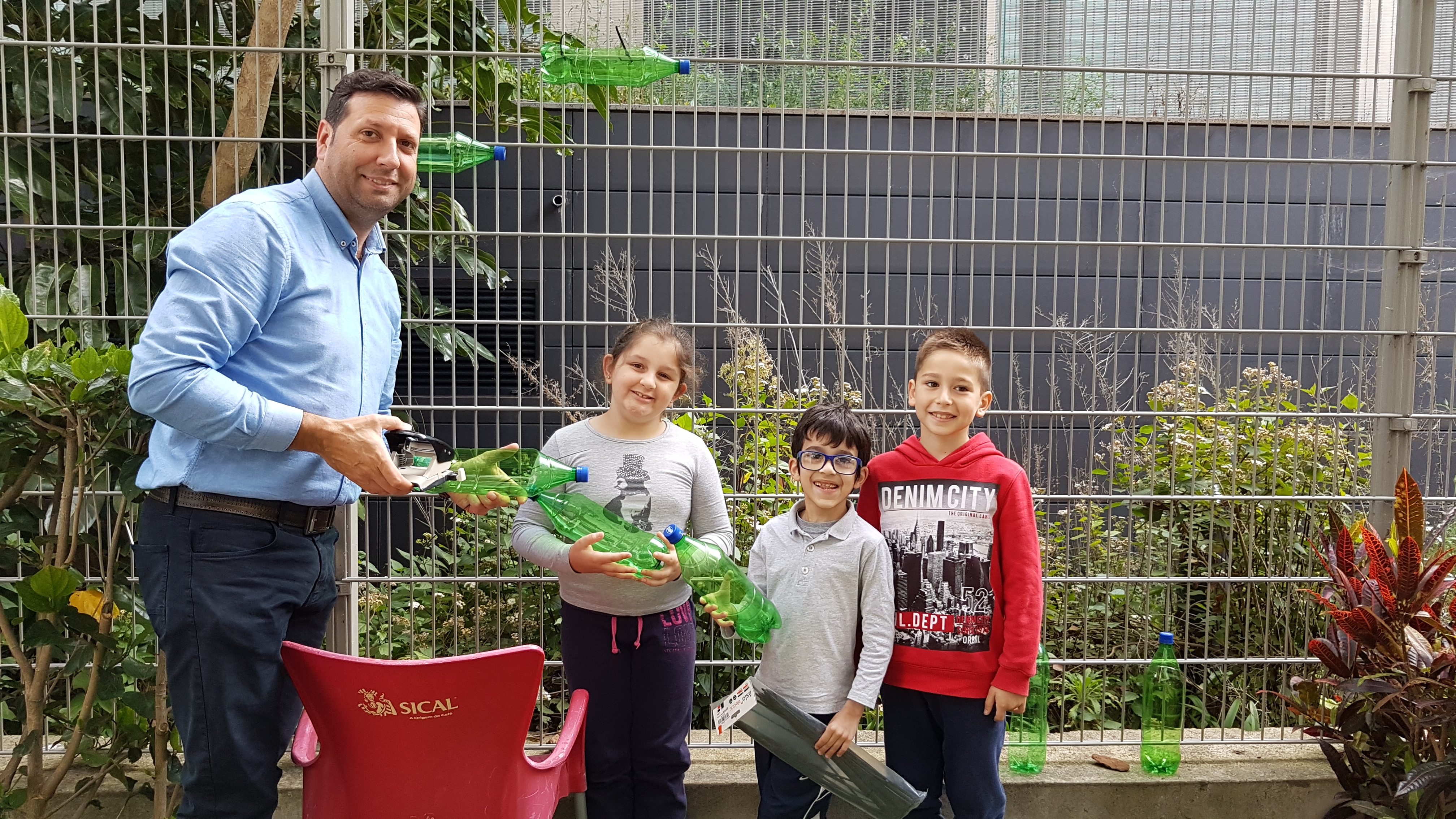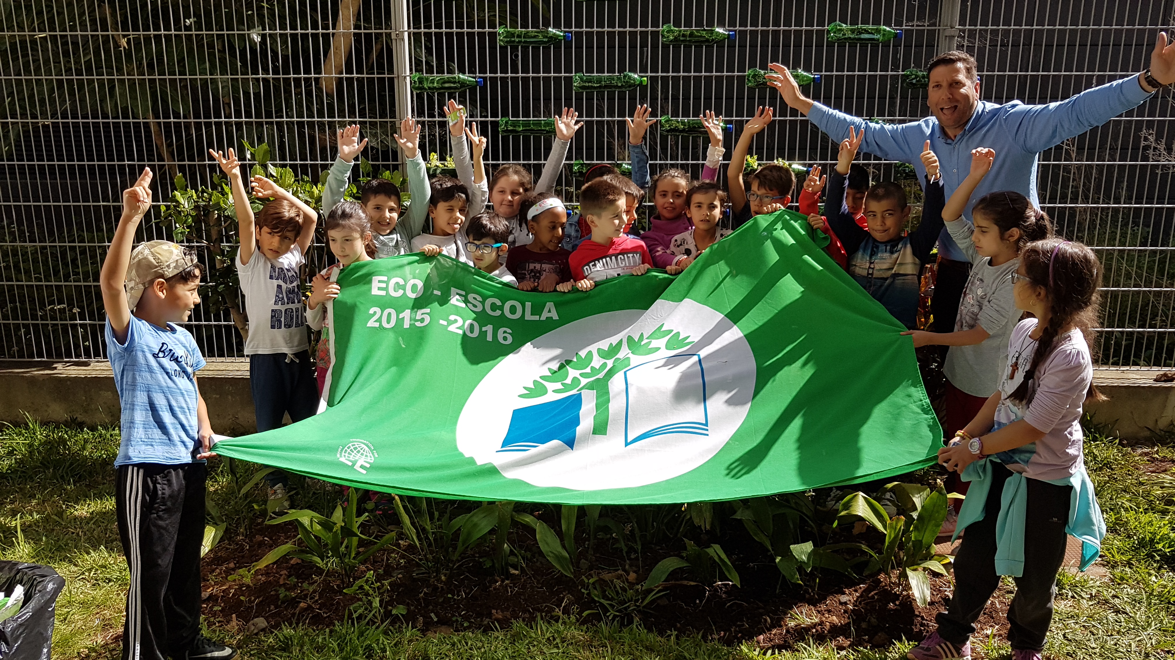 Os alunos do segundo ano da EB1/PE/C da Ribeira Brava elaboraram uma horta vertical com recurso a materiais reciclados e procederam à plantação de produtos hortículas.