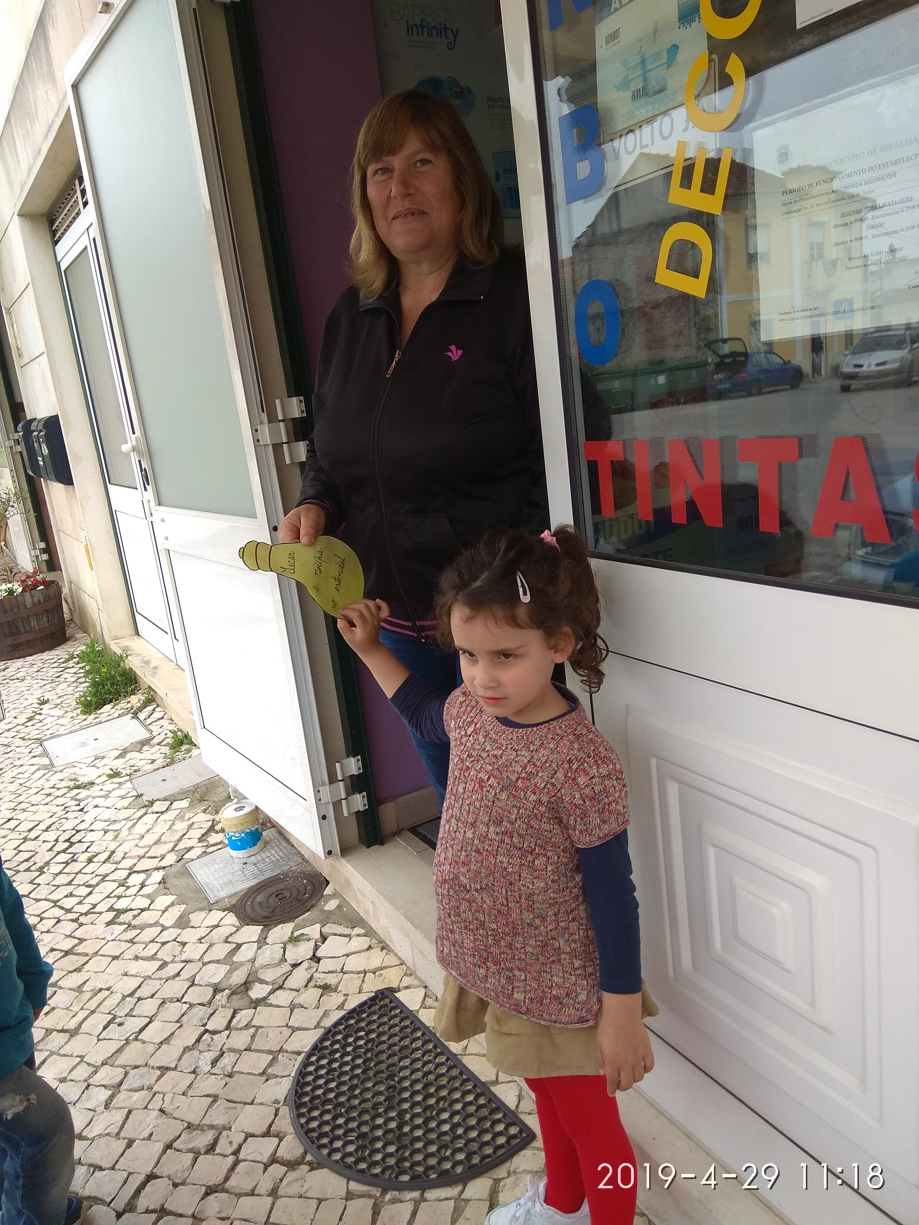 Sensibilização à comunidade local através de distribuição de mensagens sobre a poupança de energia. As crianças levaram também para casa mensagens para diálogo em família.