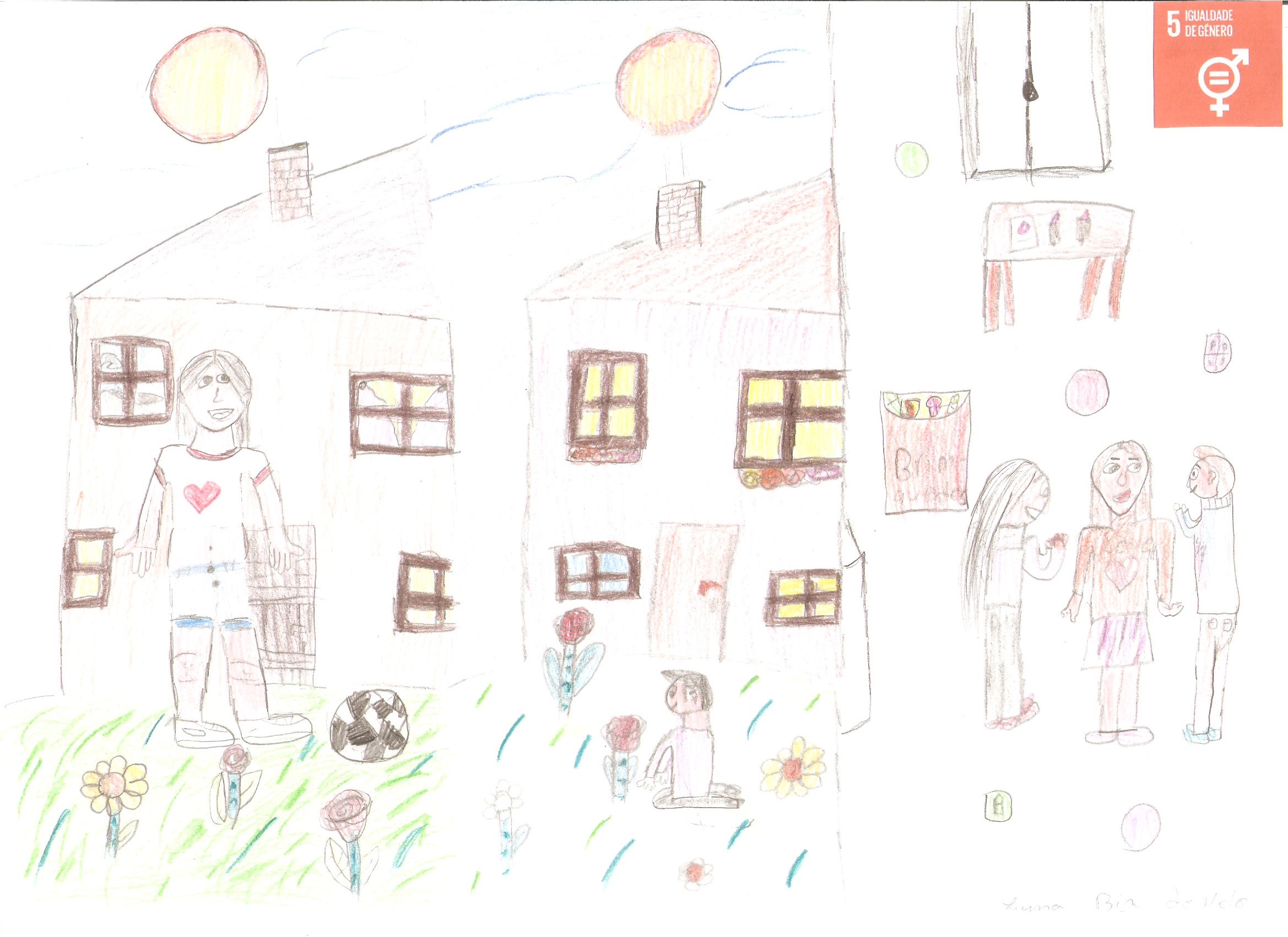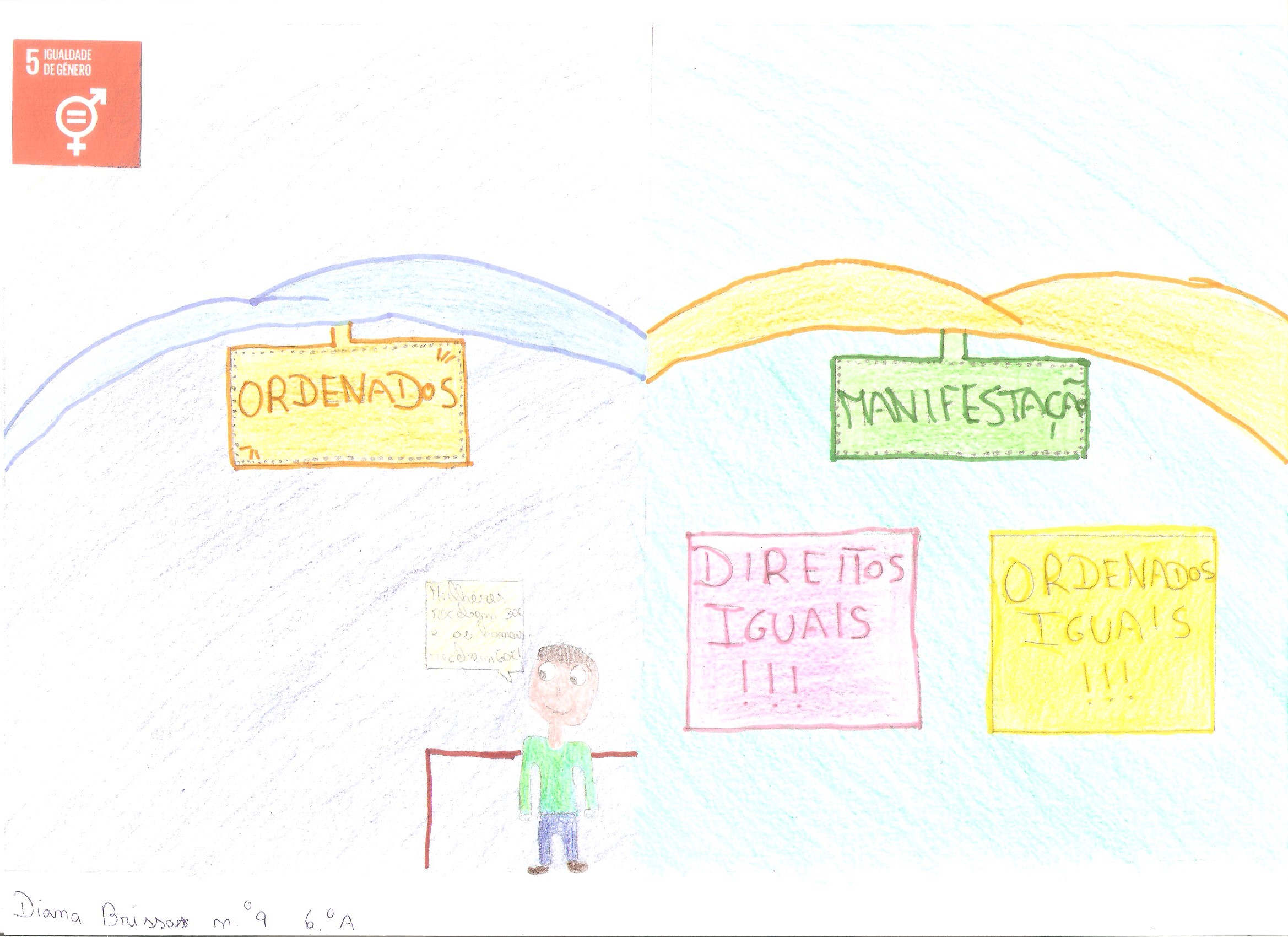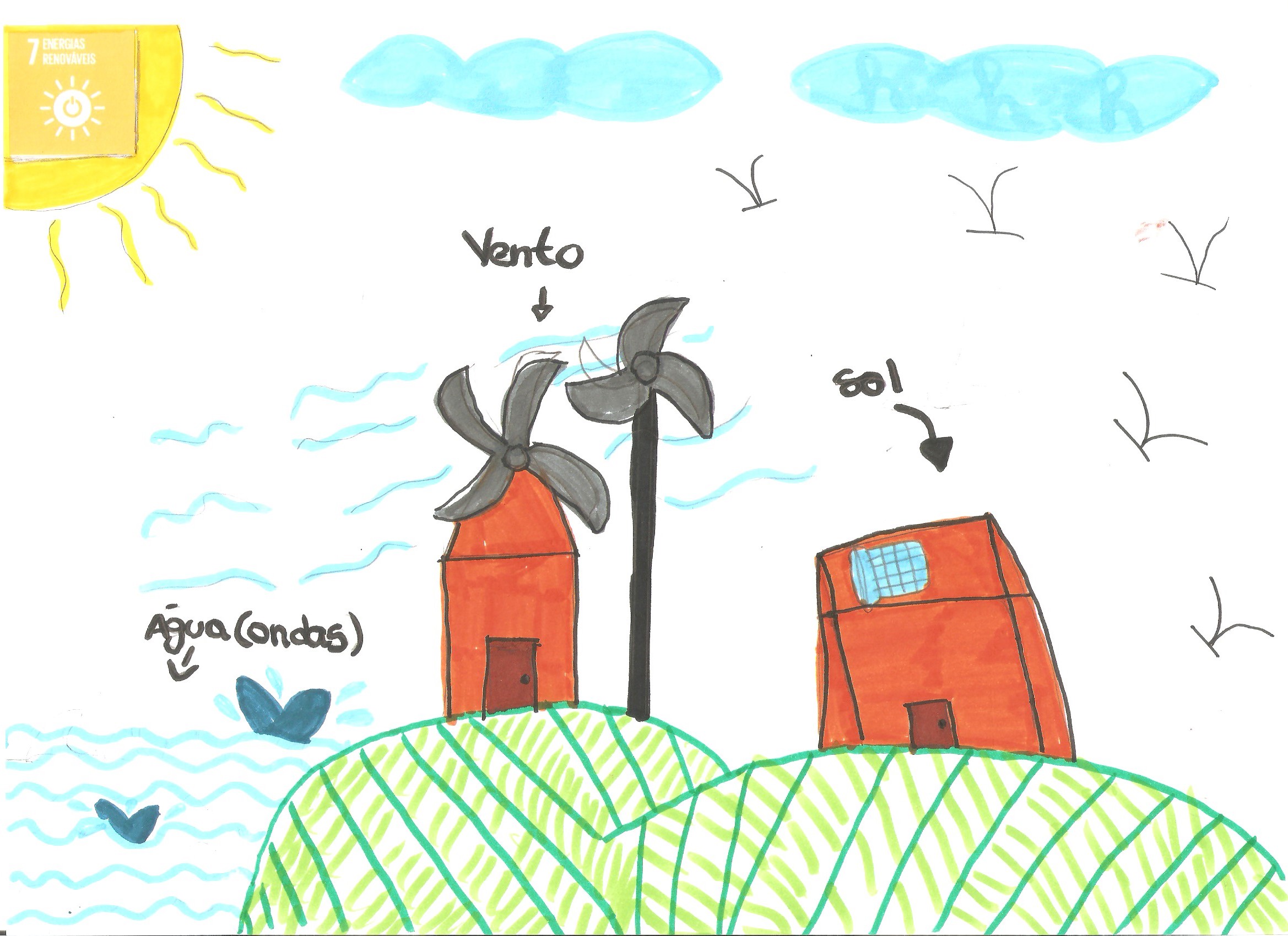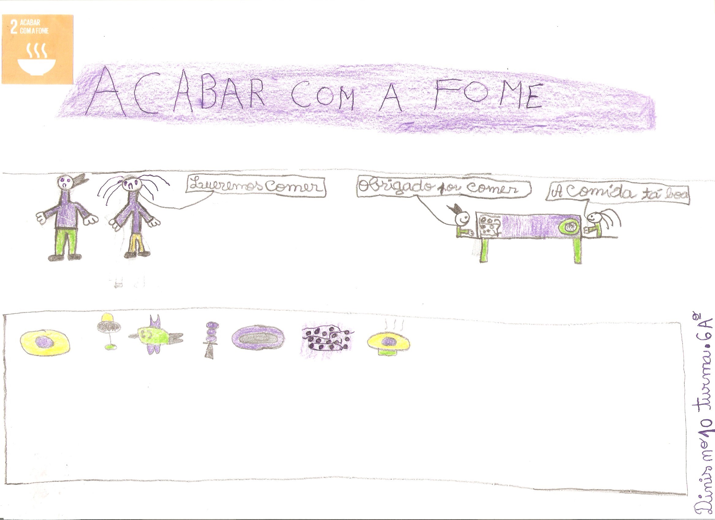Nas aulas de Cidadania e Desenvolvimento do 6ºA, após abordar os Objetivos de Desenvolvimento Sustentável com base em vídeos, foi proposto que cada aluno fizesse uma ilustração sobre um dos objetivos.