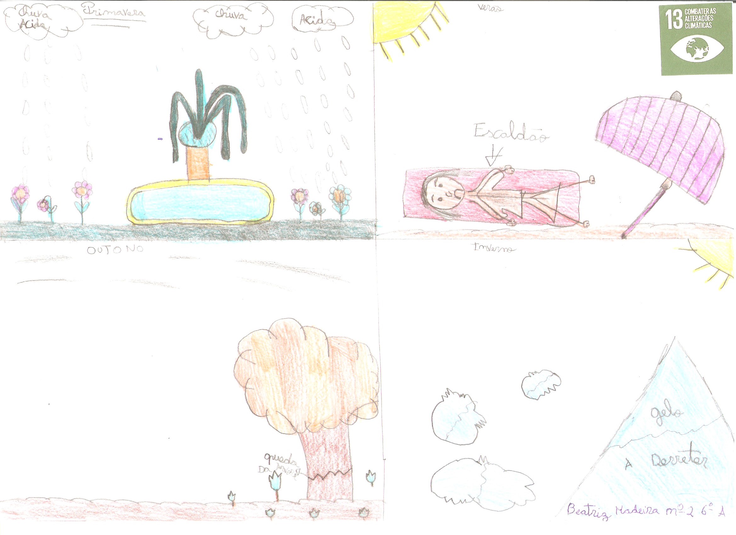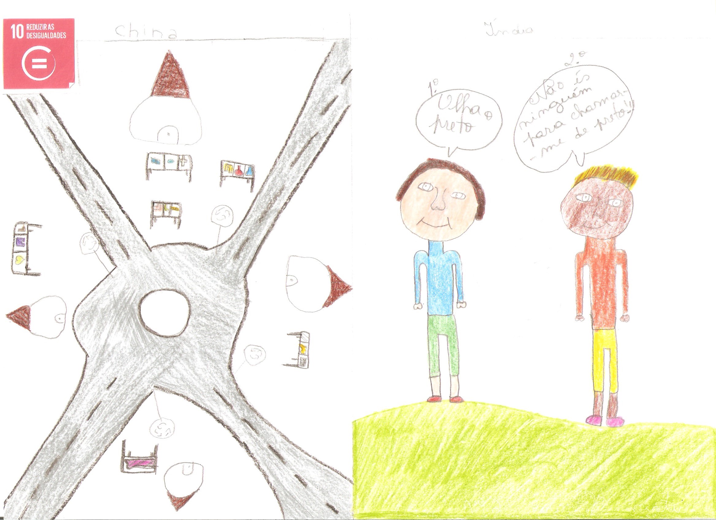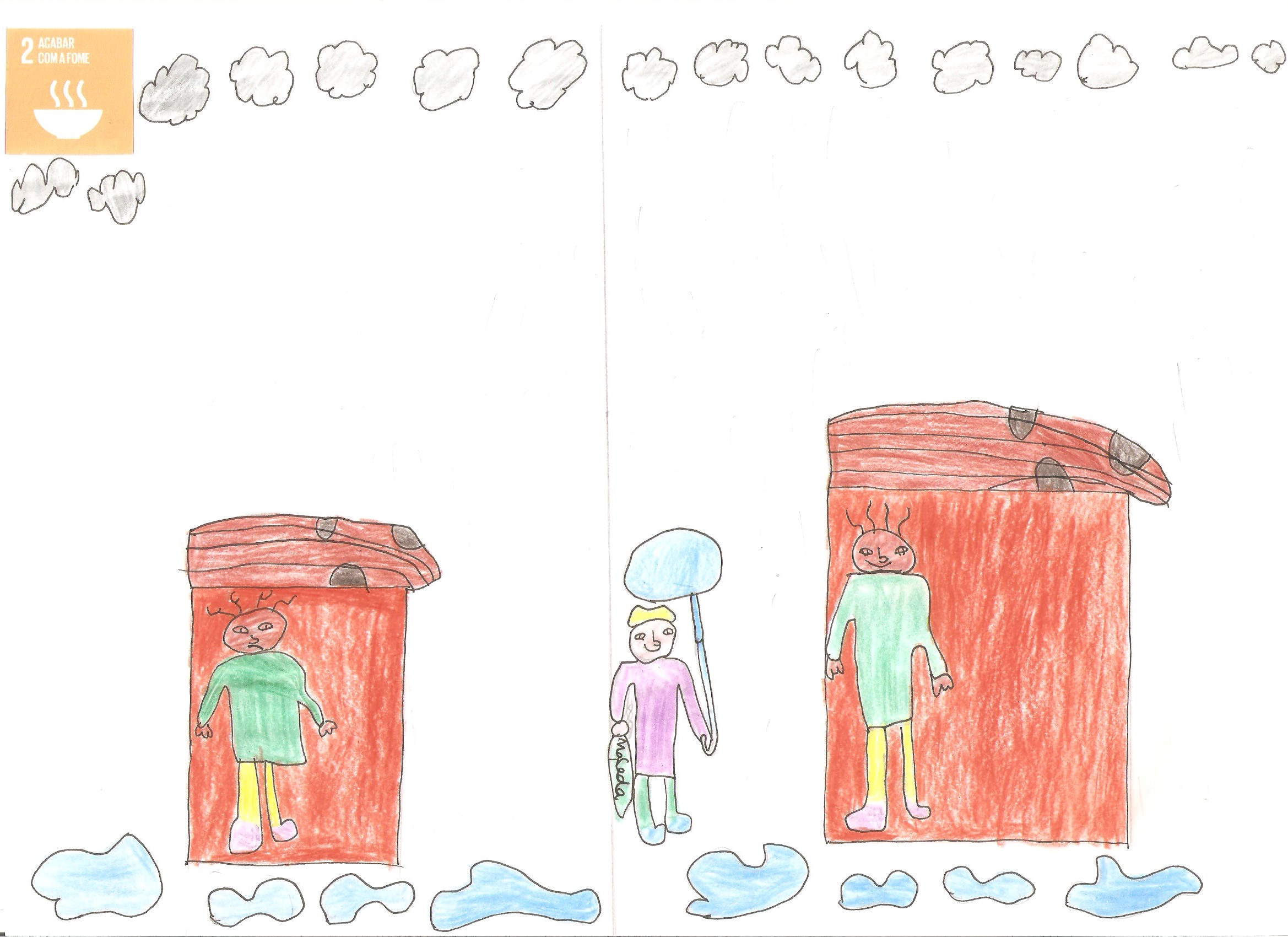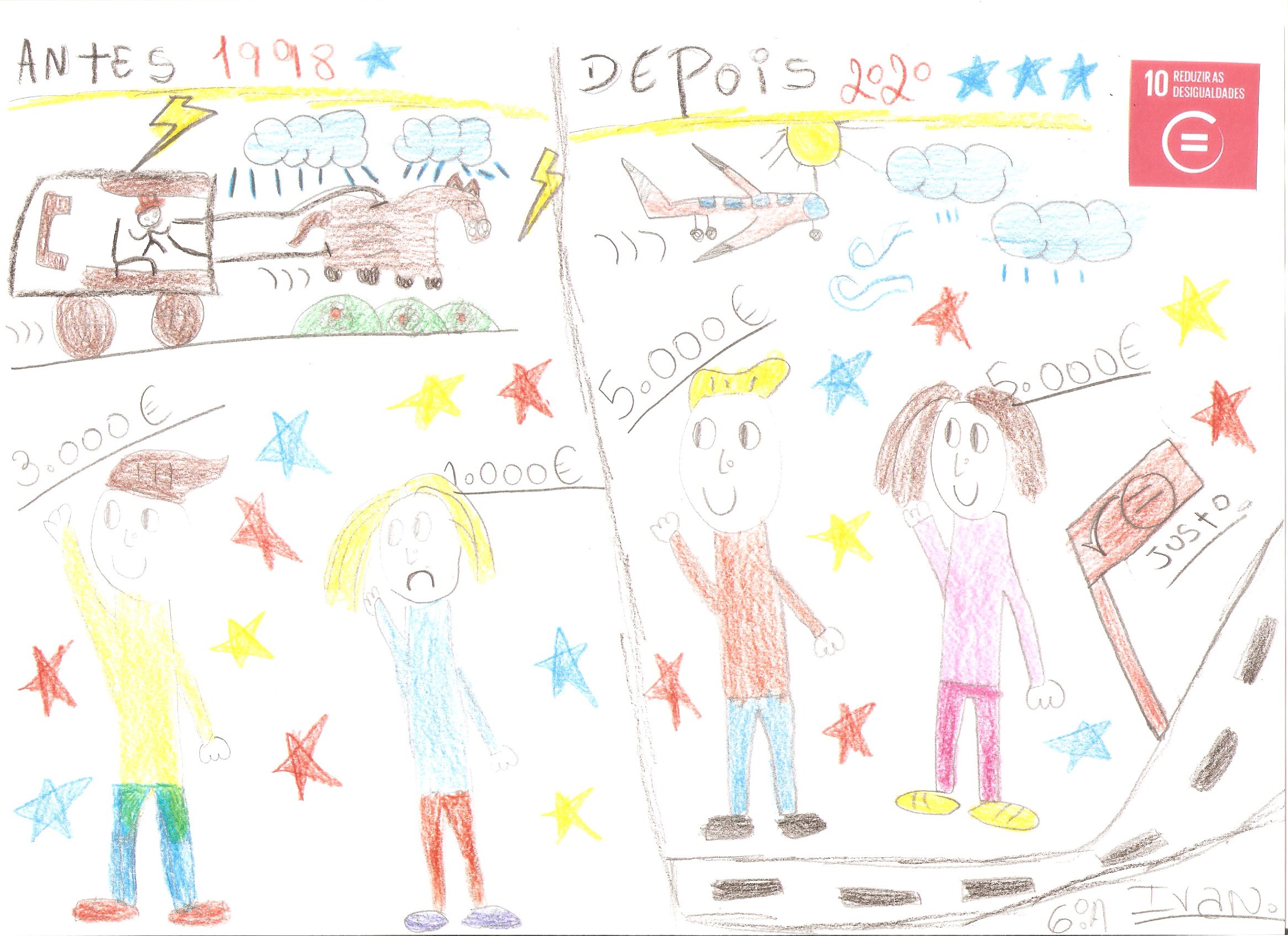 Nas aulas de Cidadania e Desenvolvimento do 6ºA, após abordar os Objetivos de Desenvolvimento Sustentável com base em vídeos, foi proposto que cada aluno fizesse uma ilustração sobre um dos objetivos.