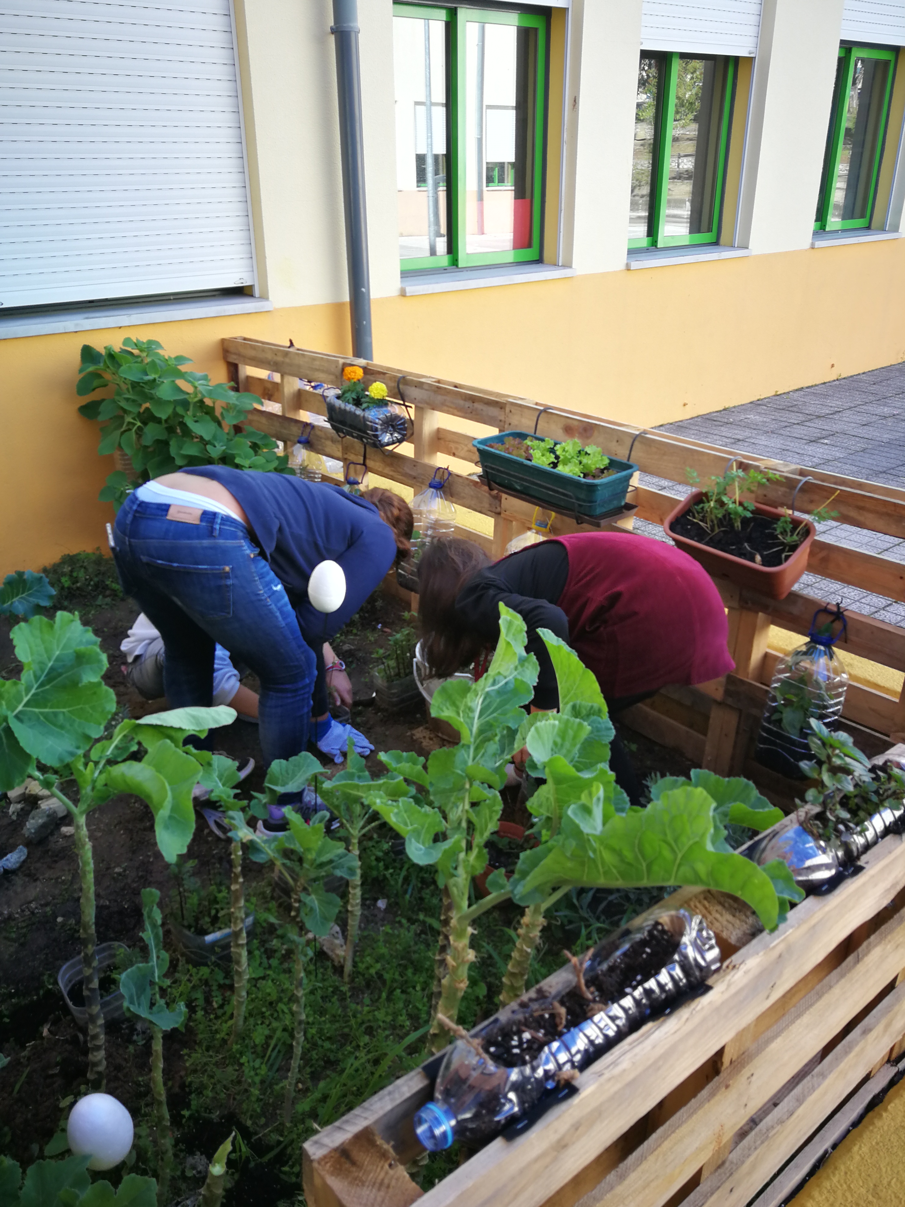 Os alunos monitores da Biblioteca Escolar Teresa Calçada, os alunos das brigadas verdes e os alunos do 6º 4ª dão continuidade às atividades da horta.