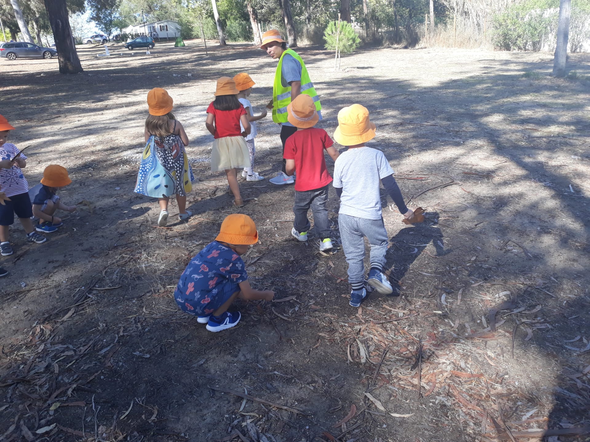 As  crianças da sala de jardim de infancia foram para uma mata pertencente ao parque de campismo de Évora,  onde poderam apanhar diferentes materiais,.onde brincaram, onde limparam a mata e onde aproveitaram  para fazer um trabalho sobre  o outono com esses materiais.