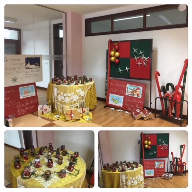 We reused jars which were decorated with Christmas décors to put our walnuts and cinnamon pumpkin jam.