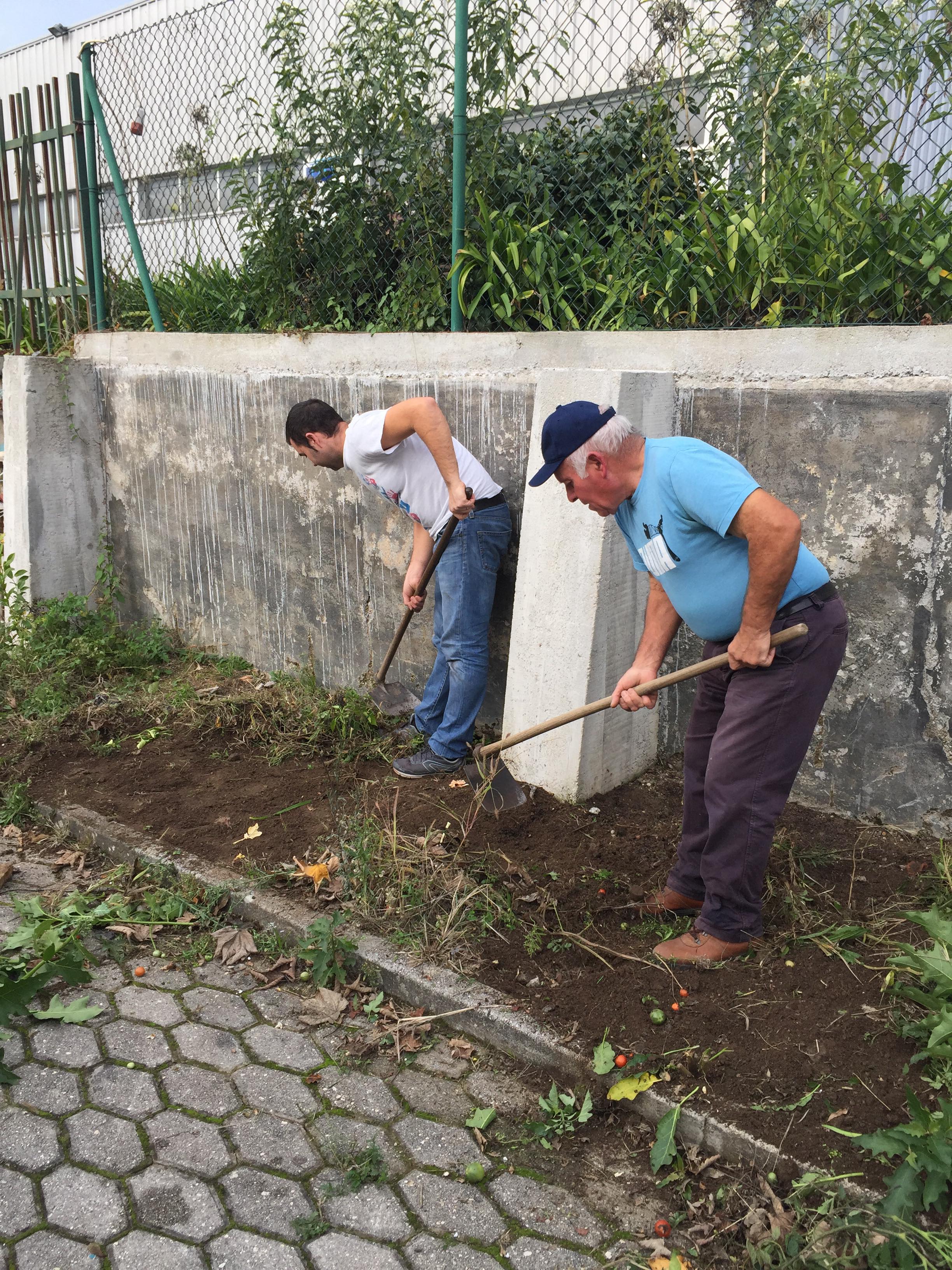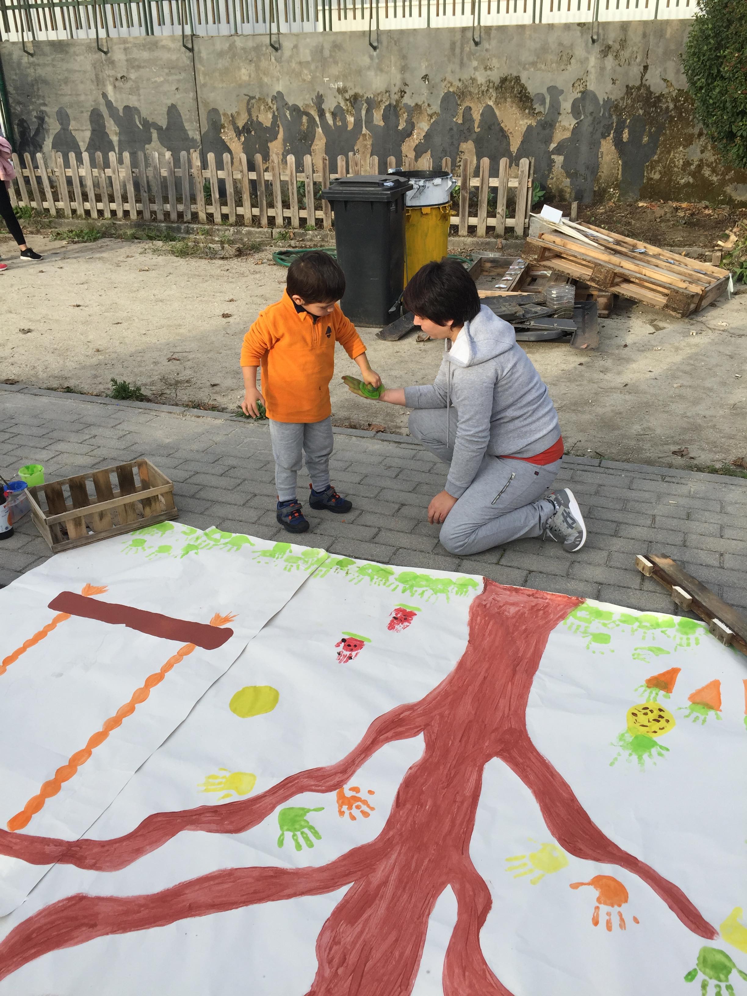 No sábado, dia 17, pais, avós, crianças lançaram mãos à Horta! Para a implantação da horta previram-se pequenas áreas, definiram-se os espaços a serem utilizados e o tipo de produção pretendida. Os pais e outros familiares limparam a terra, trabalharam-na com enxadas, construíram estruturas para sementeiras. As crianças pintaram e estamparam um painel que foi previamente preparado para angariar a colaboração de todos. O trabalho cooperativo foi o lema, uma vez que quando pensamos em conjunto semeamos muito melhor!