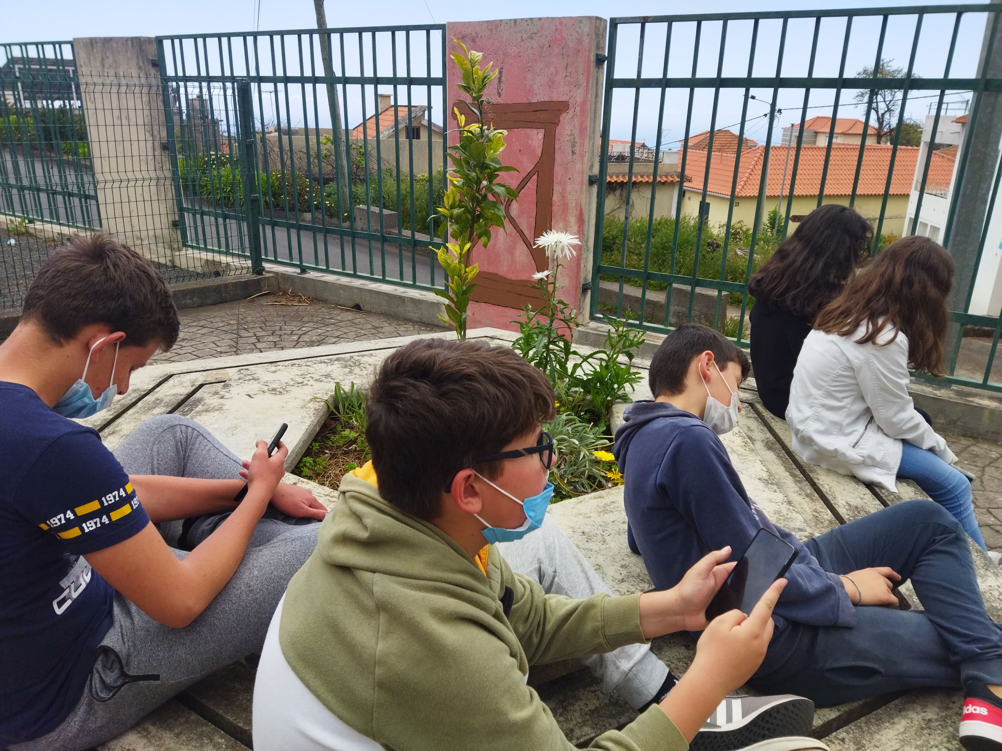 Os alunos fizeram uma caminhada de, aproximadamente 10 minutos, pelo jardim da escola. De seguida, relaxaram com os olhos fechados e escutaram os sons da natureza. Posteriormente, abriram os olhos e tiraram algumas fotografias de plantas que encontraram no jardim da escola.