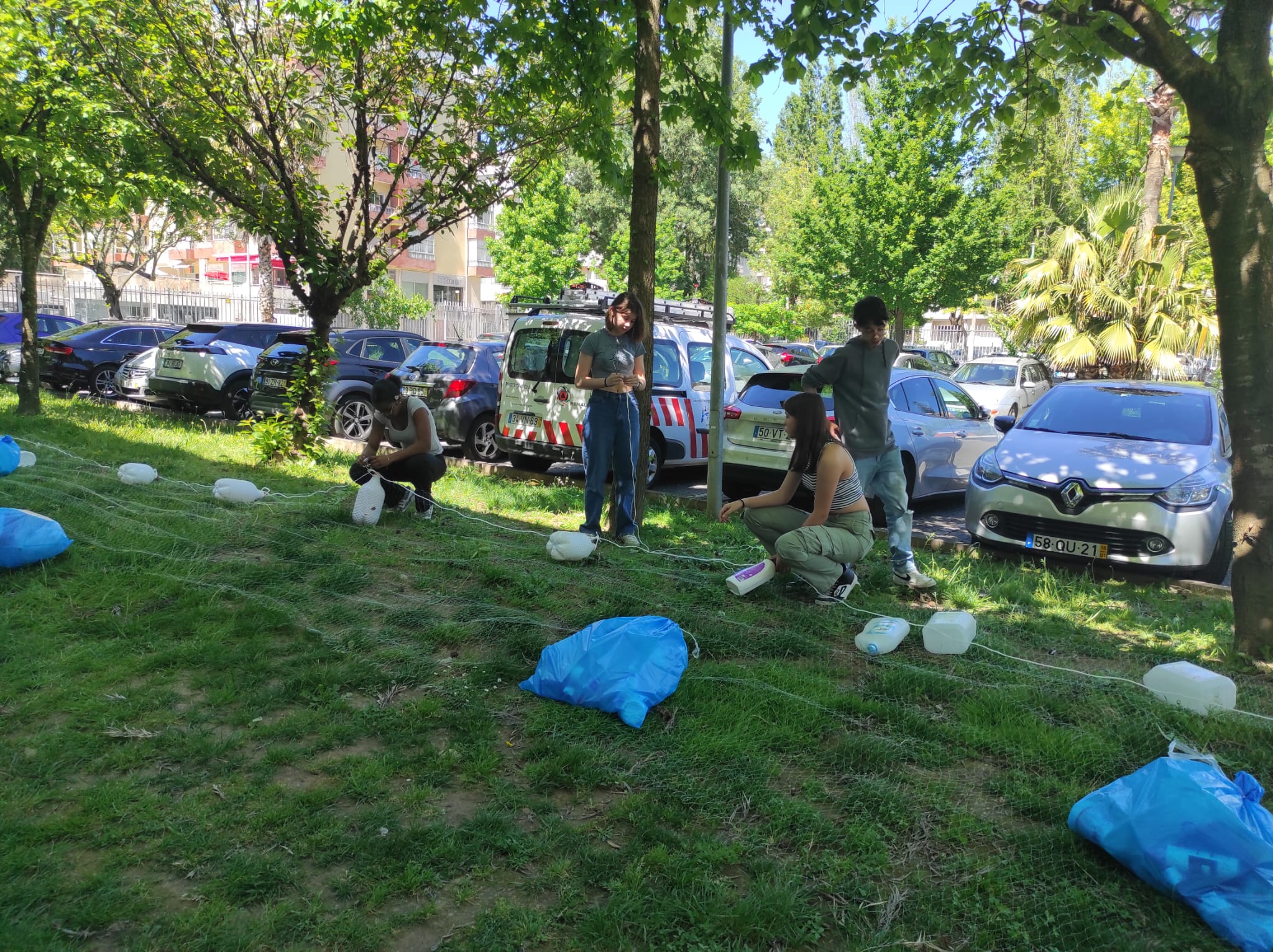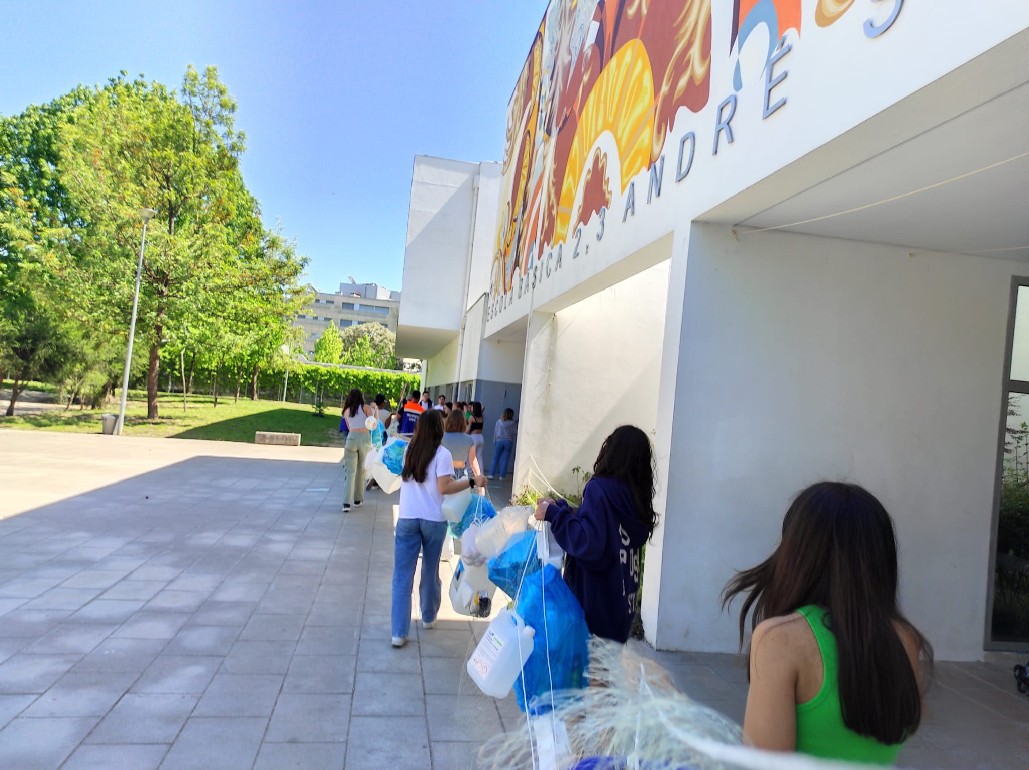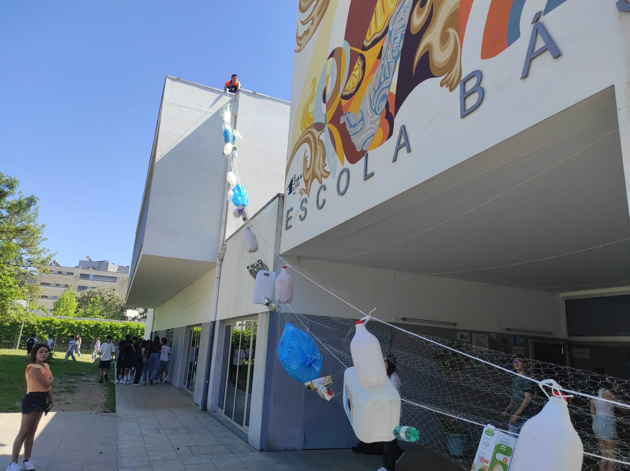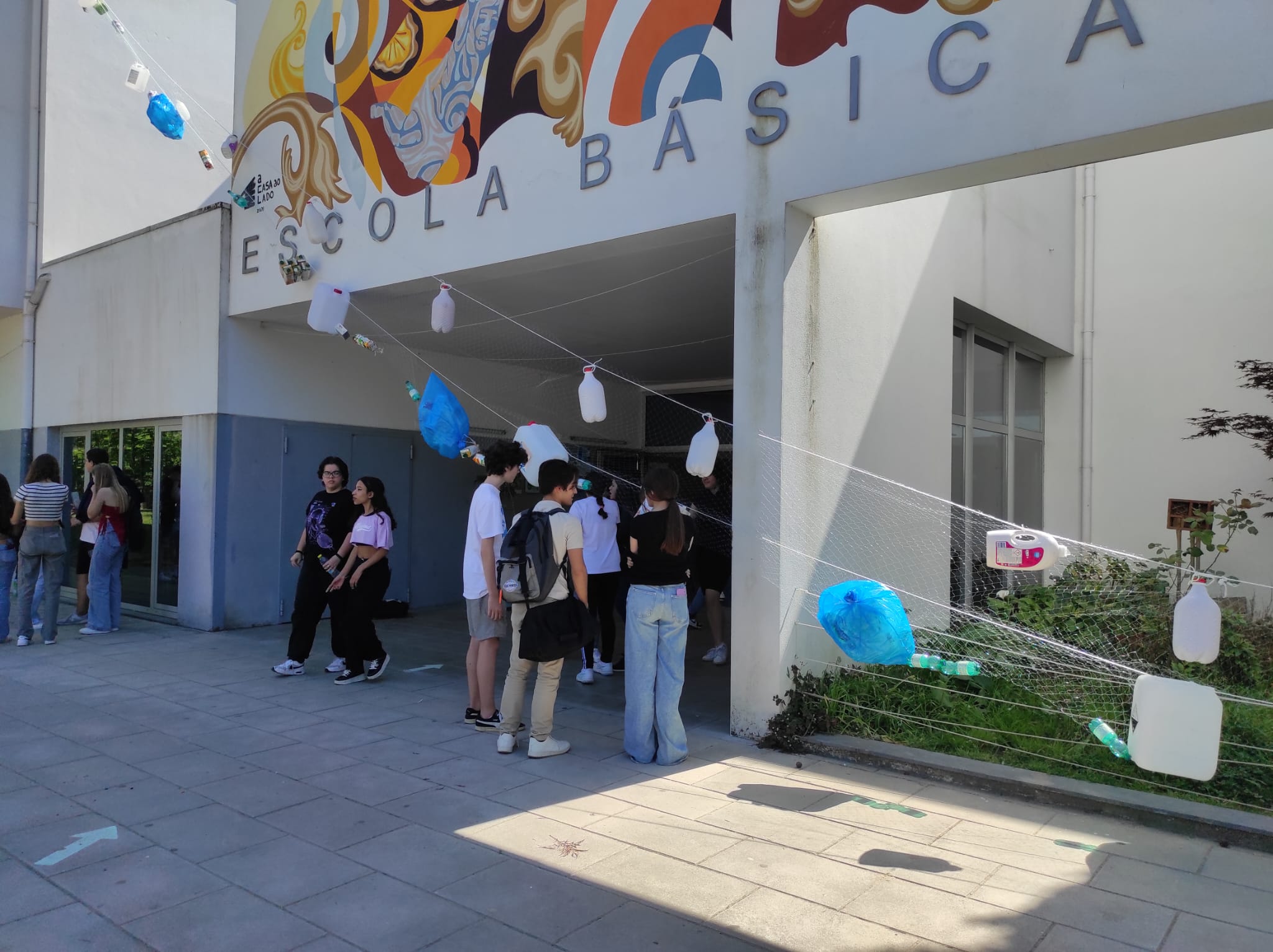 O Eco-Escola realizou uma ação inovadora e impactante para consciencializar sobre a problemática da poluição dos oceanos por plásticos. Sob a orientação da professora Márcia Coutinho, os alunos criaram uma instalação artística intitulada “Nem tudo que vem à rede é peixe”.