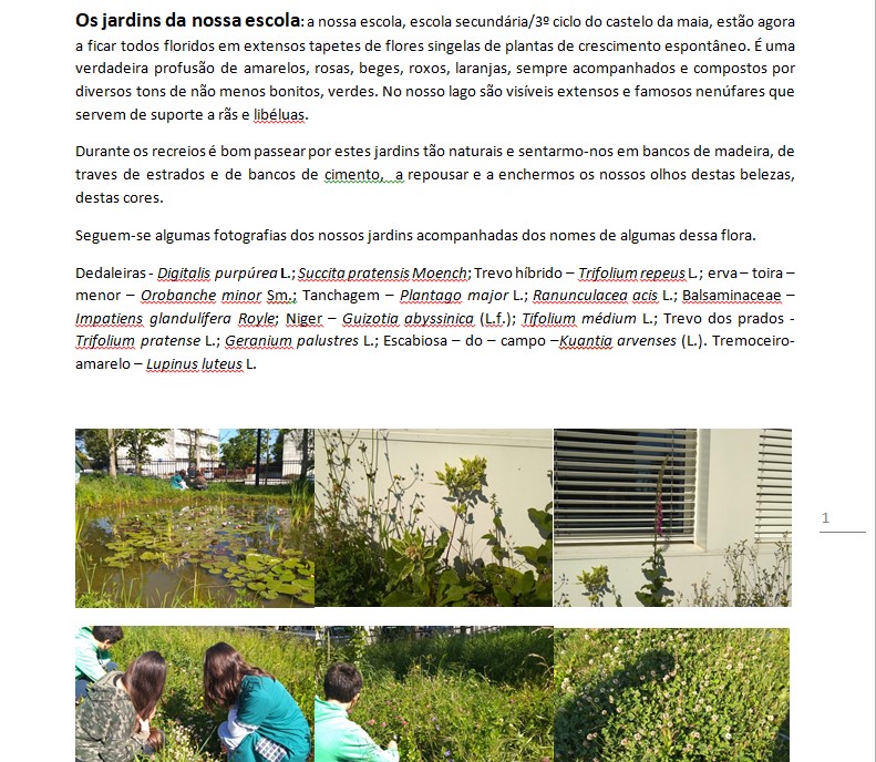 Numa visita aos jardins os alunos fotografaram e com a ajuda de uma app, identificaram várias espécies de plantas silvestres espontâneas na zona.