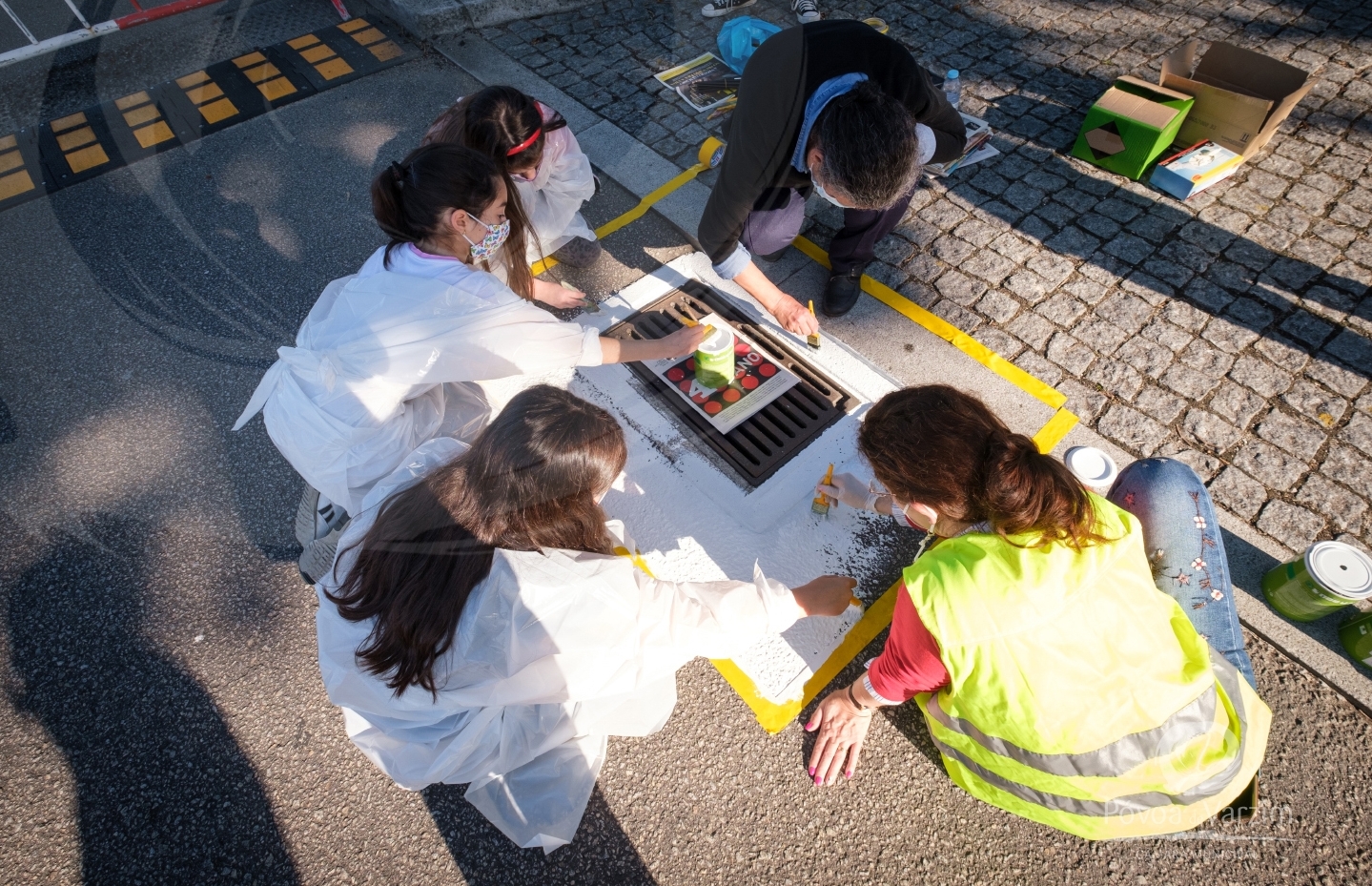 Para a realização desta atividade, os alunos do Eco Clube foram desafiados a realizar uma proposta de imagem a ser pintada numa sarjeta localizada no espaço exterior e outra no espaço interior da escola, através de um concurso interno realizado, tendo sido posteriormente escolhida a imagem vencedora, pintada pelos próprios alunos, sob a orientação das professoras Coordenadoras Natália Correia e Inês Caseira.