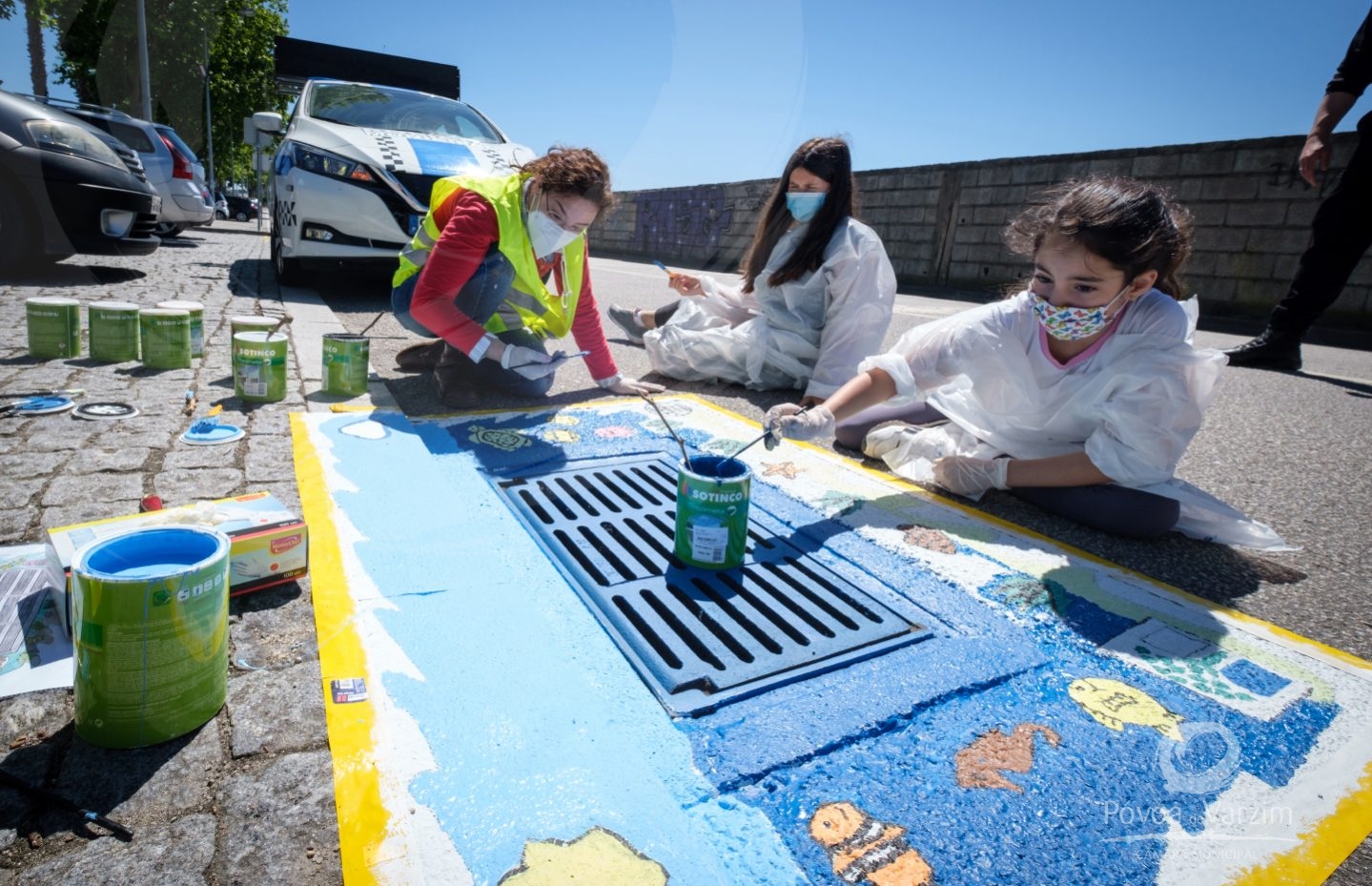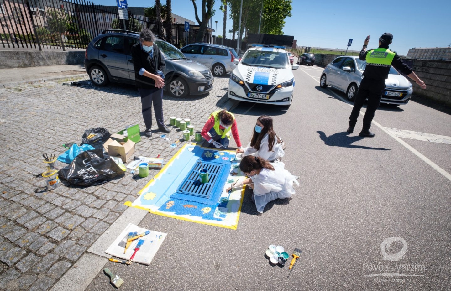 A pintura das sarjetas contou com o apoio e articulação da Polícia Municipal da Póvoa de Varzim e da Divisão de Serviços Ambientais do nosso Município.