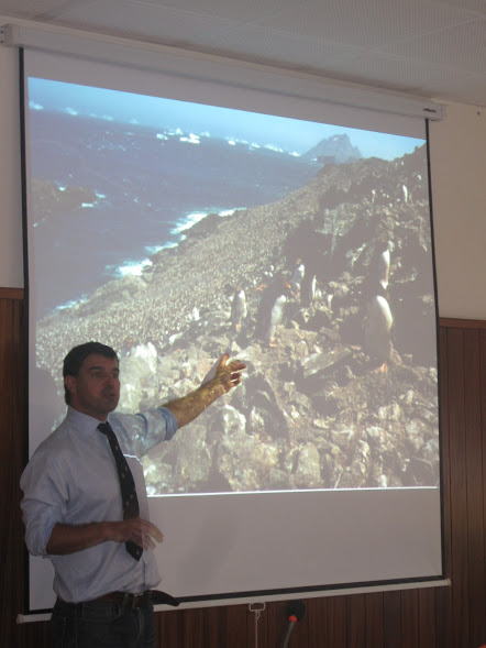 b) conversa com os alunos sobre a Antártida, os animais que lá vivem e as suas características.