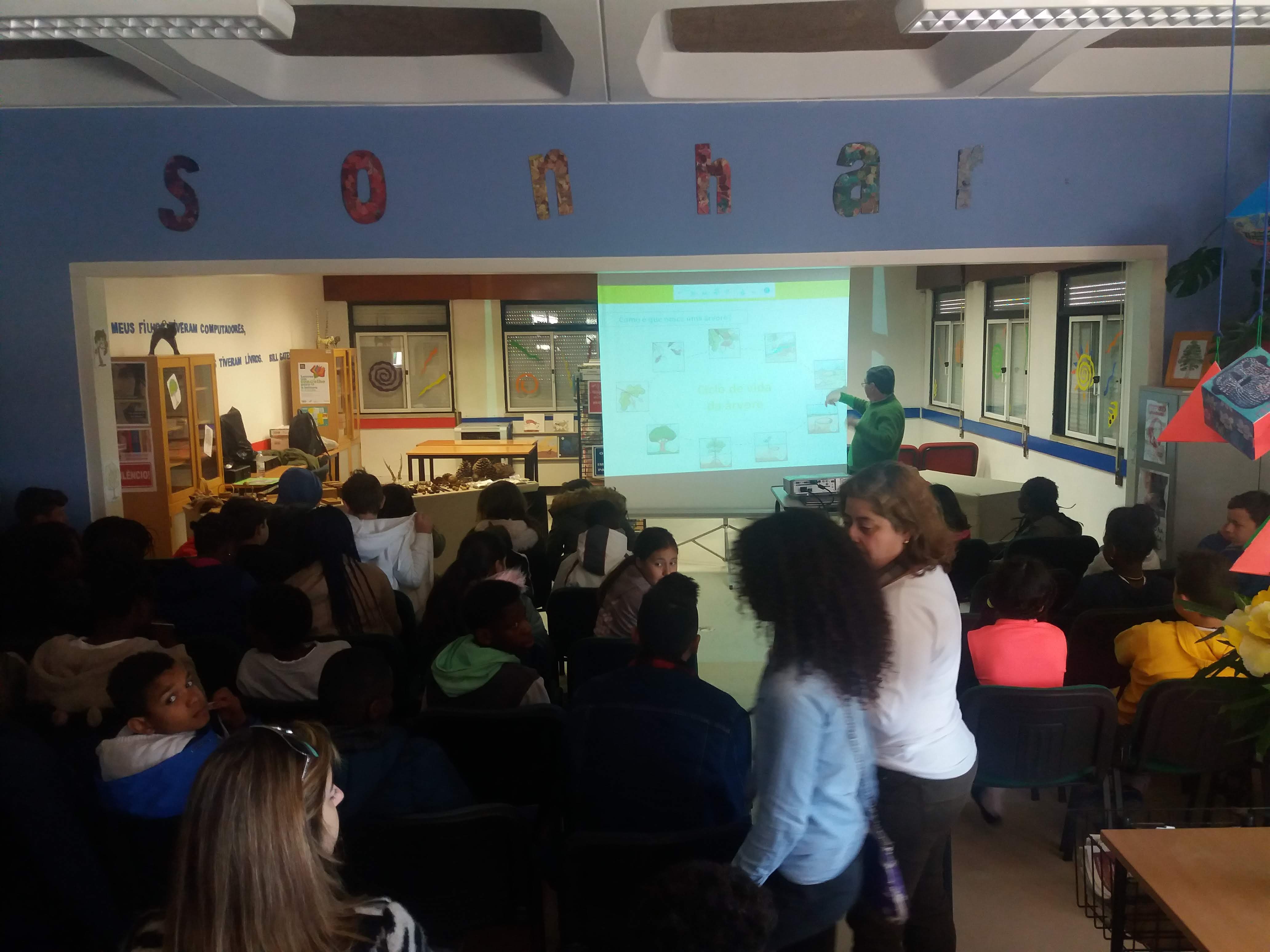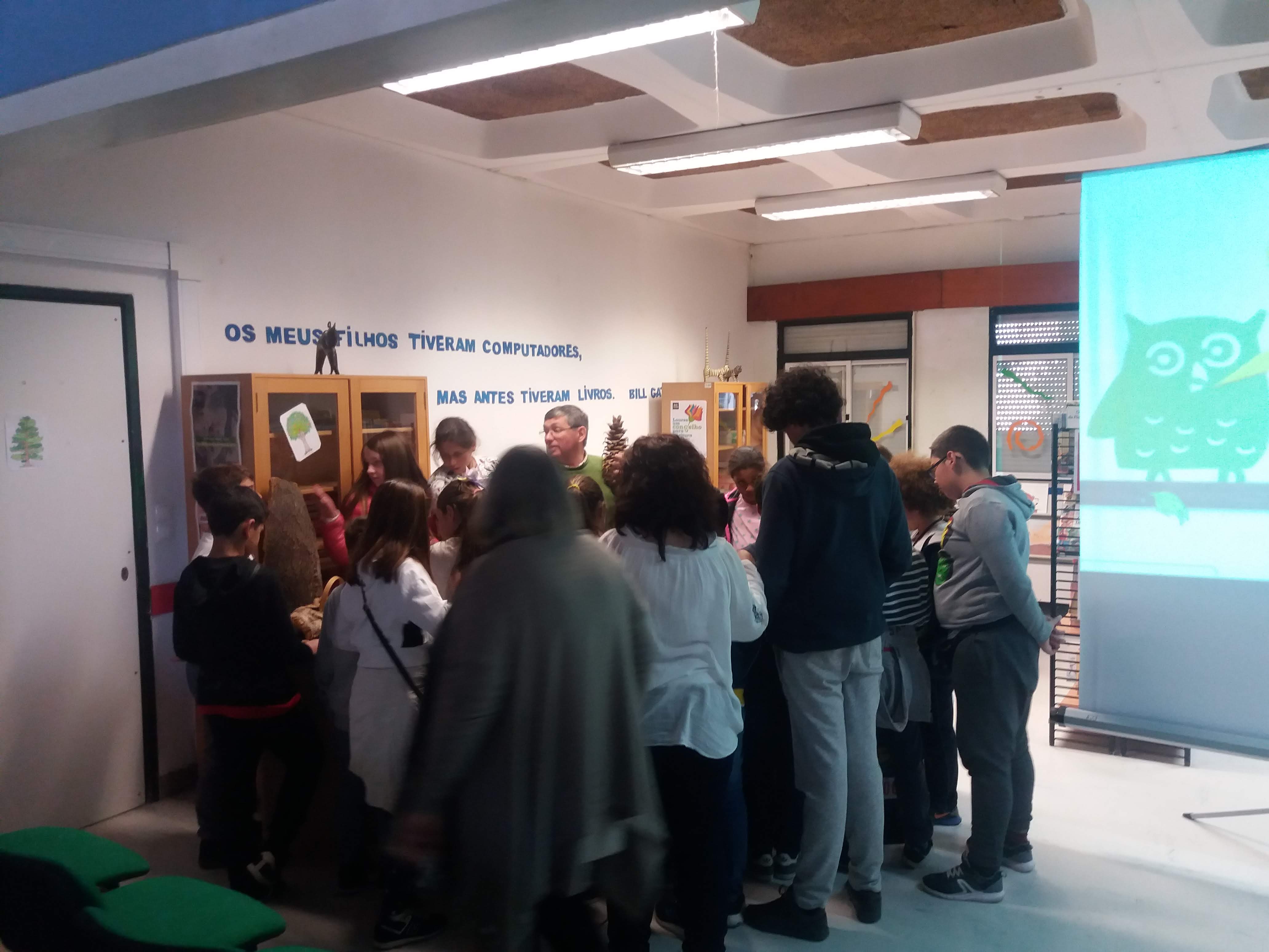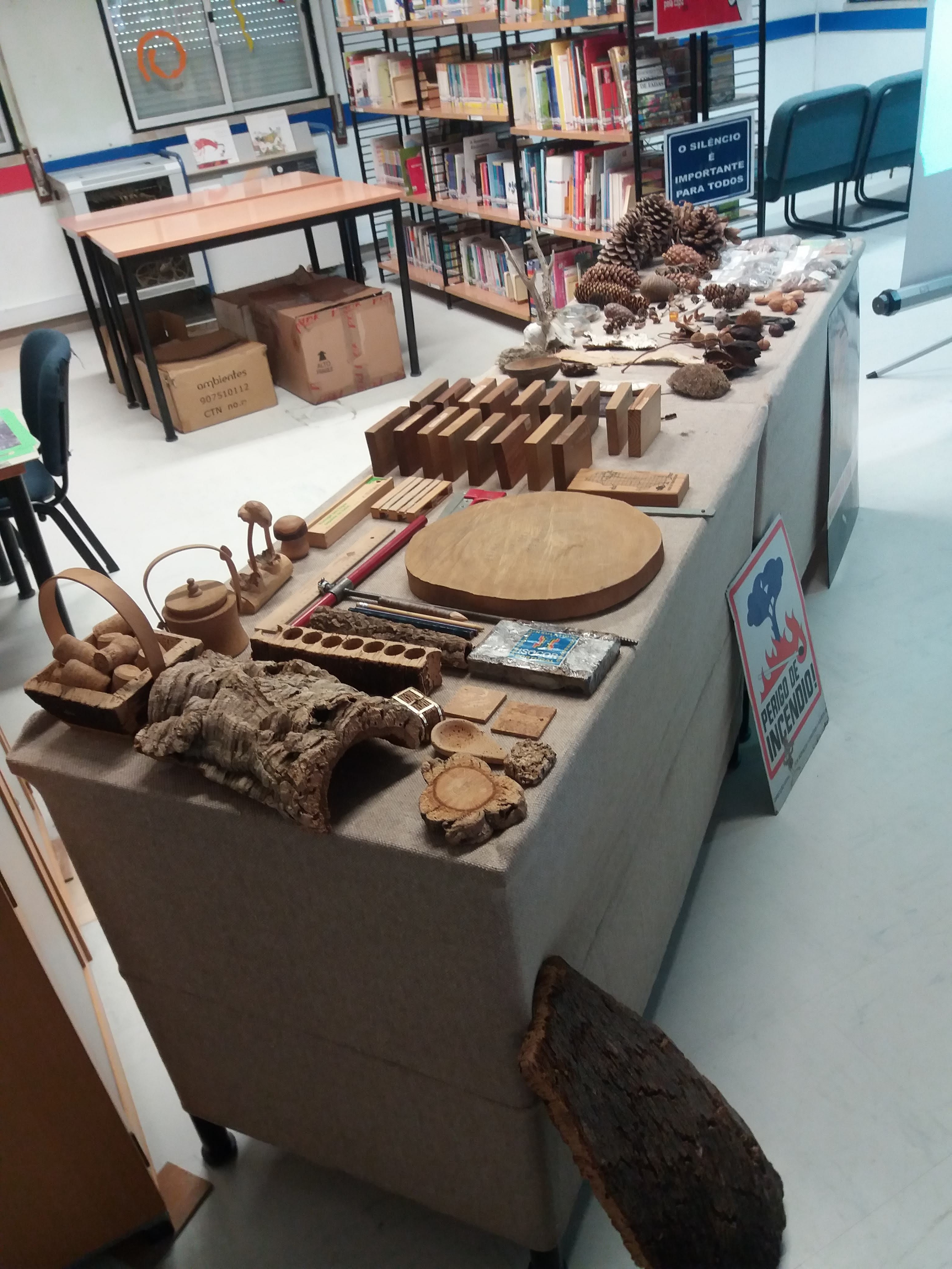 Realizaram-se várias palestras com um técnico do ICNF e foi apresentada uma “montra” com elementos da floresta (frutos, sementes, diferentes tipos de madeira e matérias primas).
