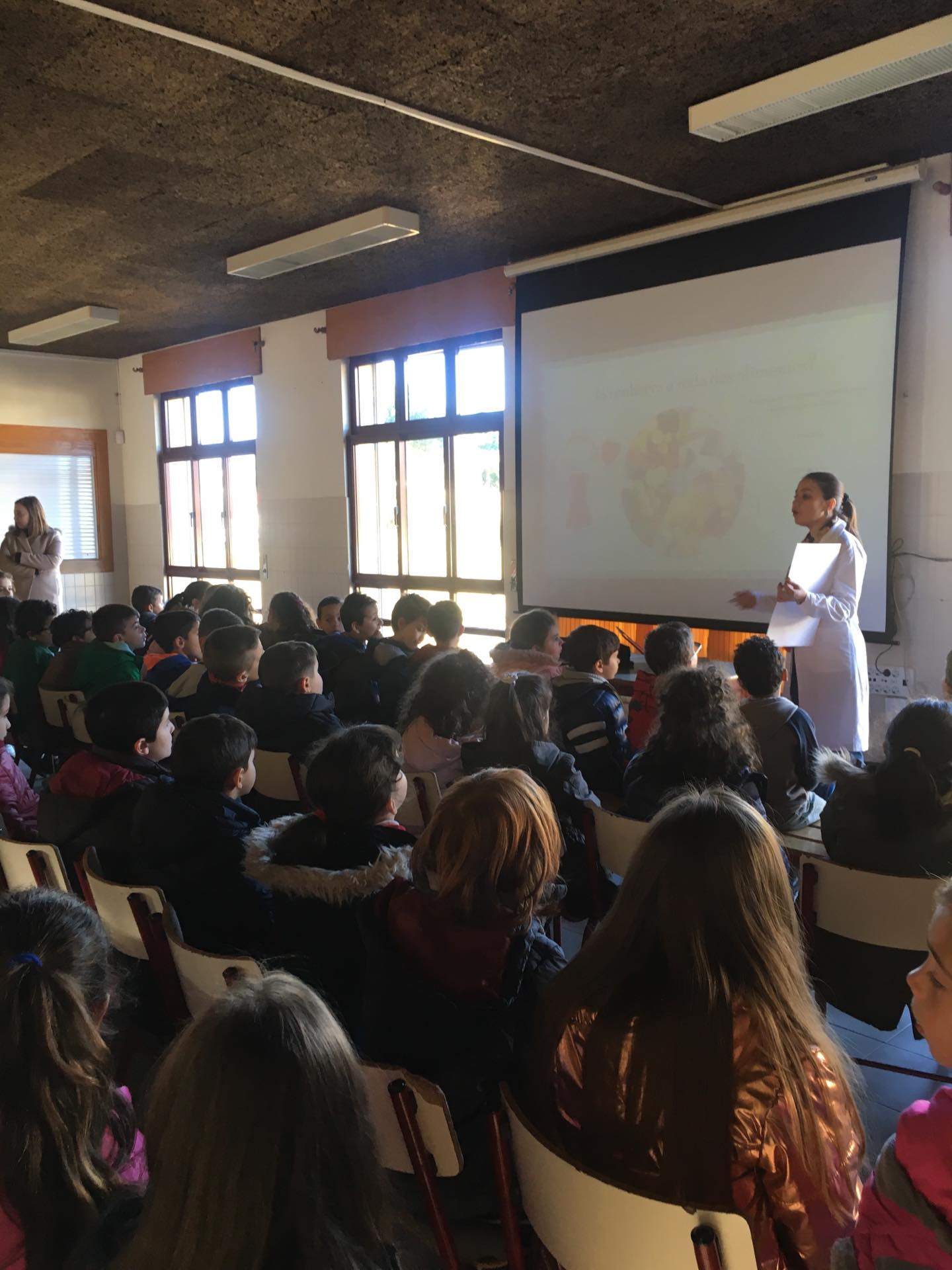 Dinamização de uma palestra para todos os alunos do pré-escolar e 1.º ciclo sobre o tema da Alimentação saudável.