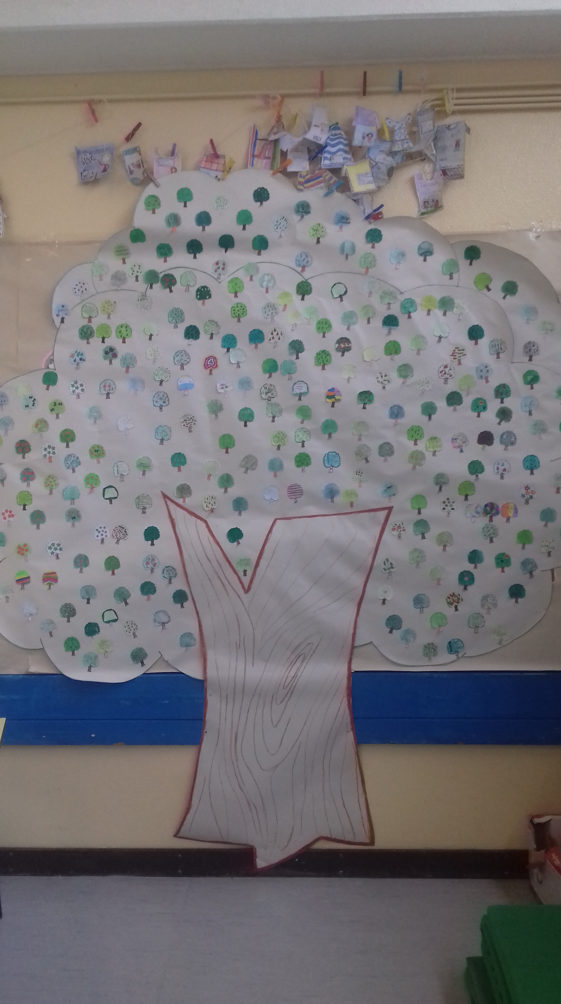 - colocação da árvore ilustrada numa grande árvore exposta no polivalente da escola;