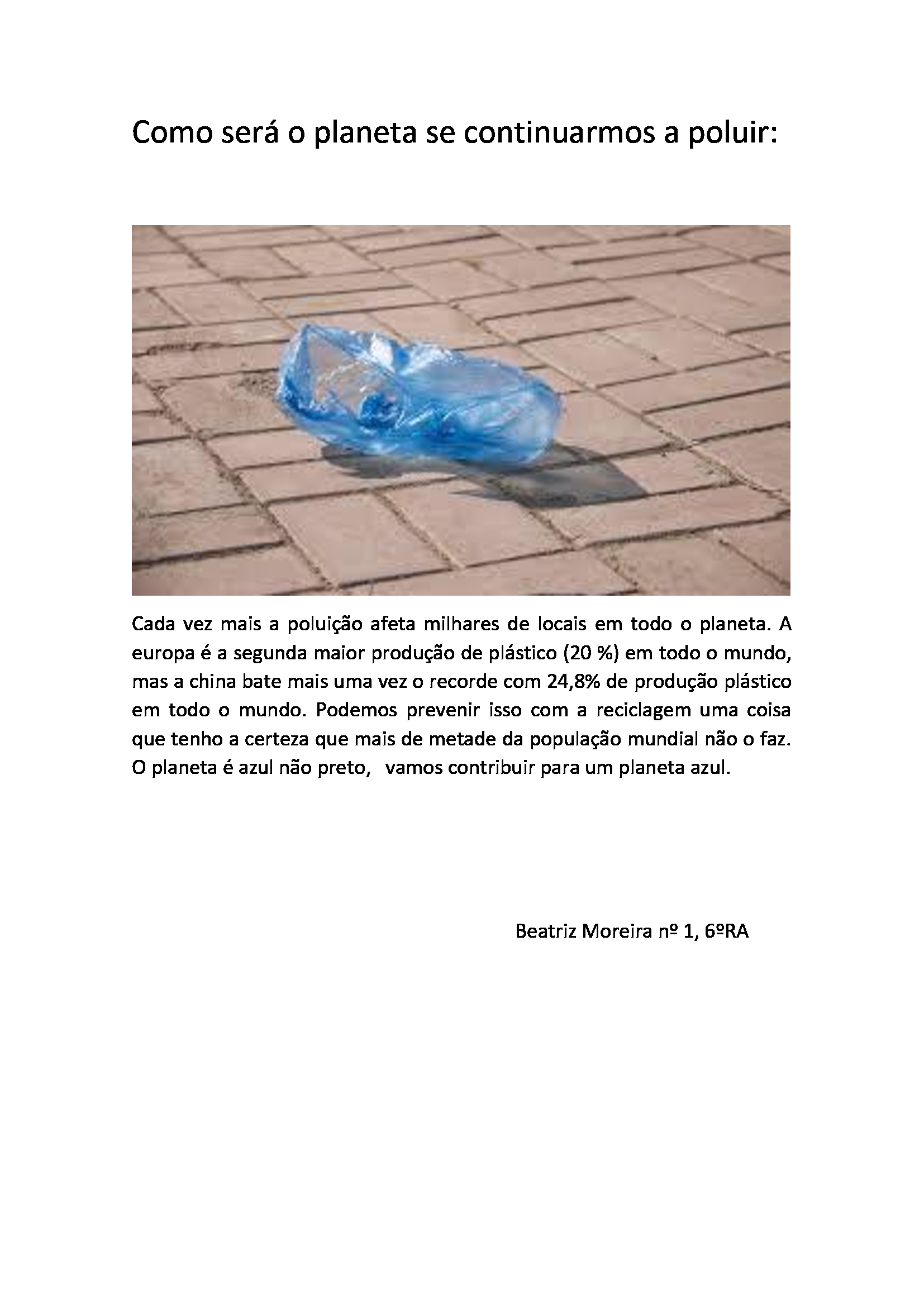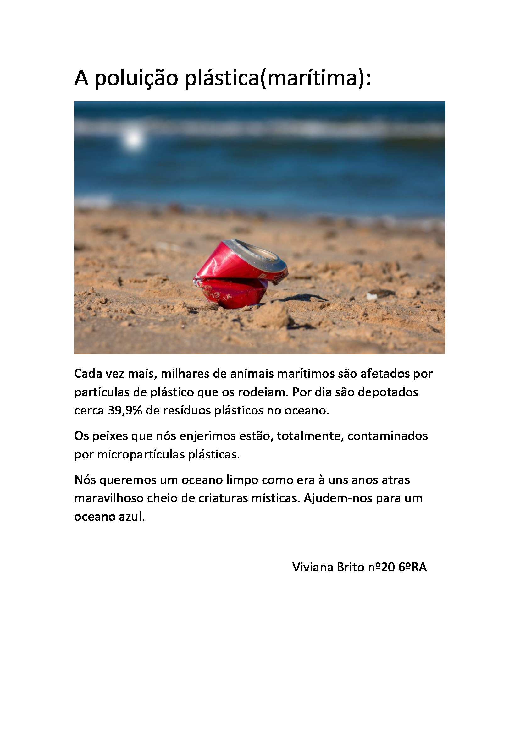 As turmas do 6º ano elaboraram imagens com textos ou textos com imagens alusivos ao tema Planet or Plastic, com vista a alertar para o impacto dos plásticos no ambiente marinho.