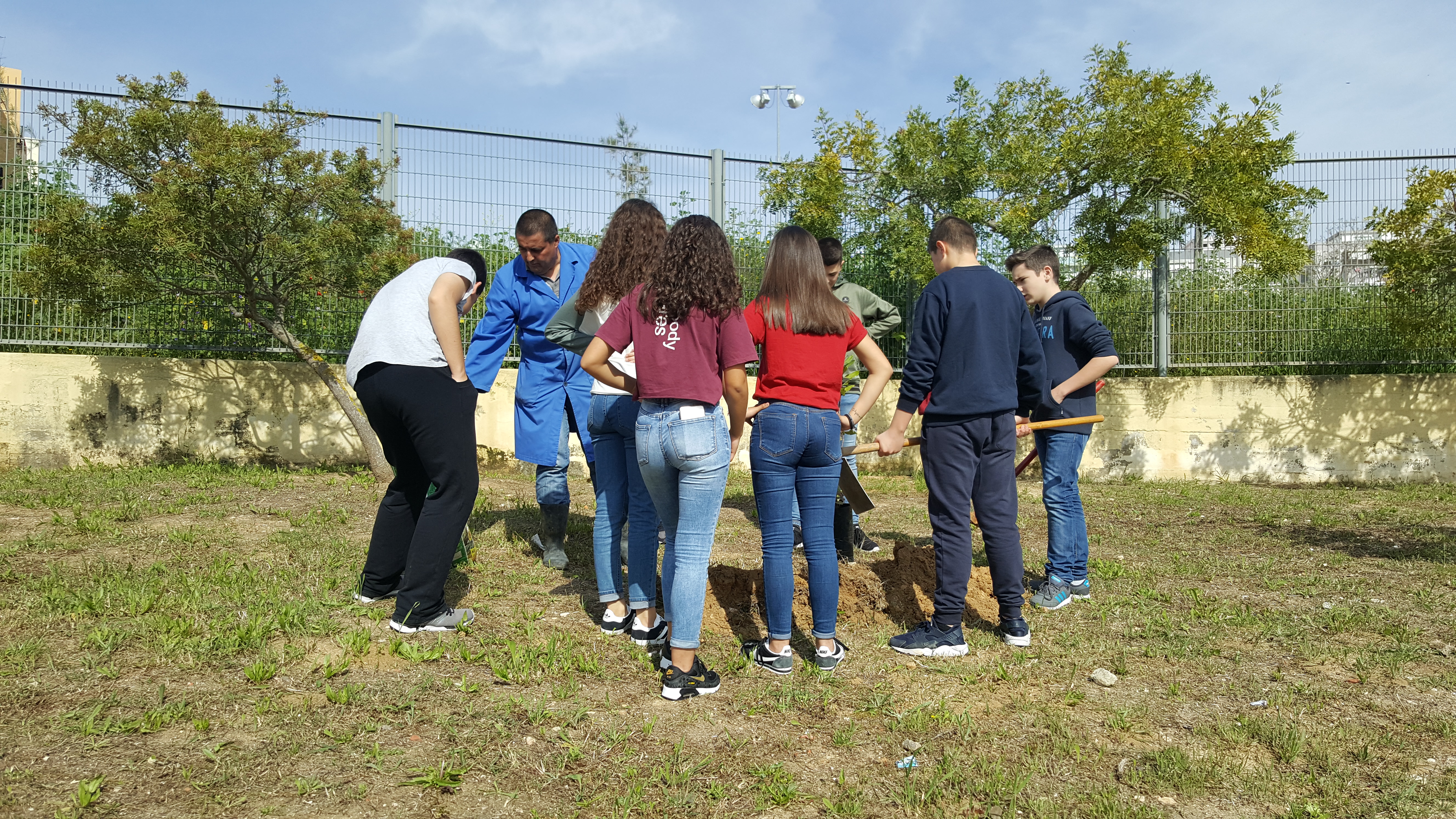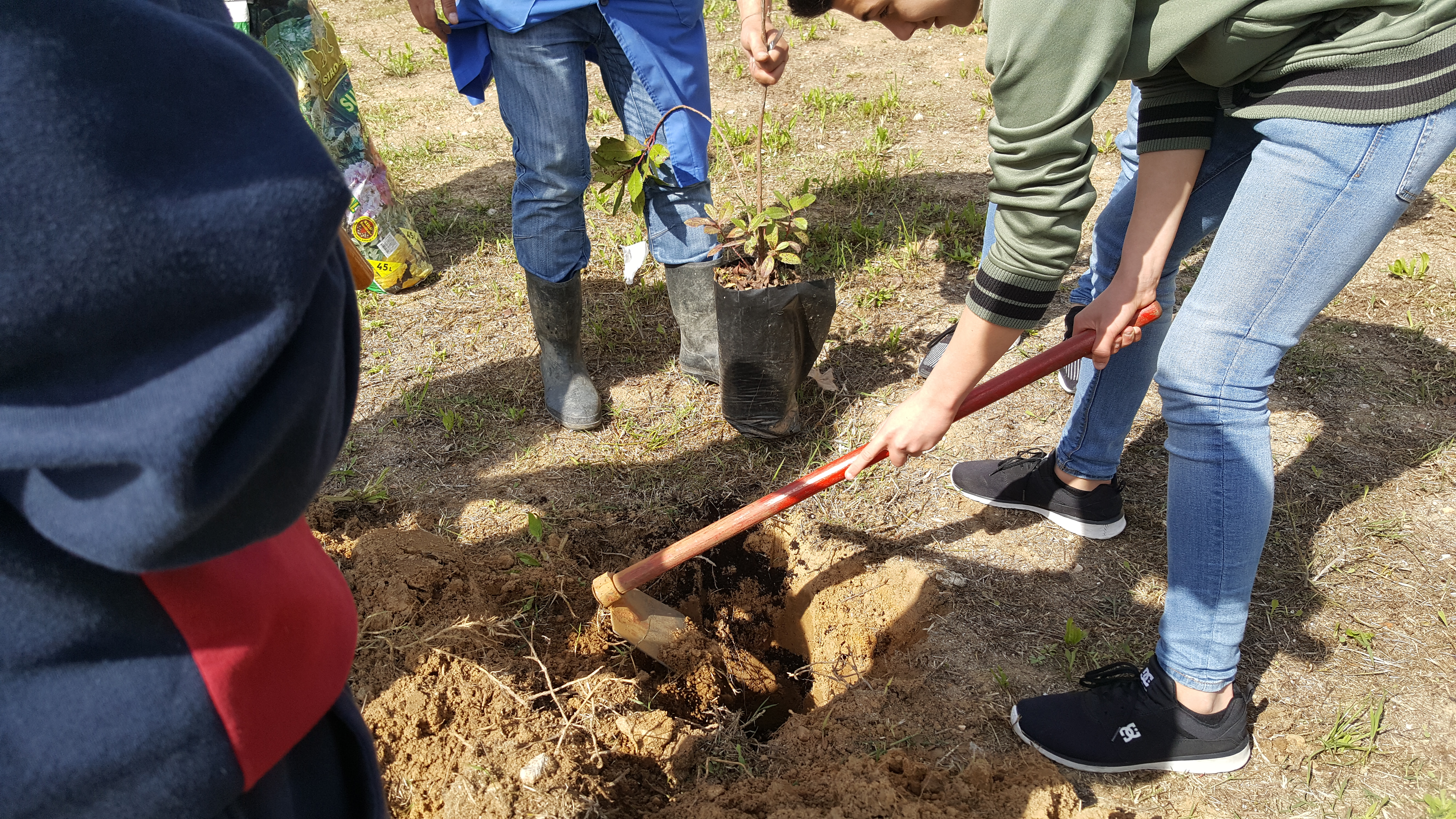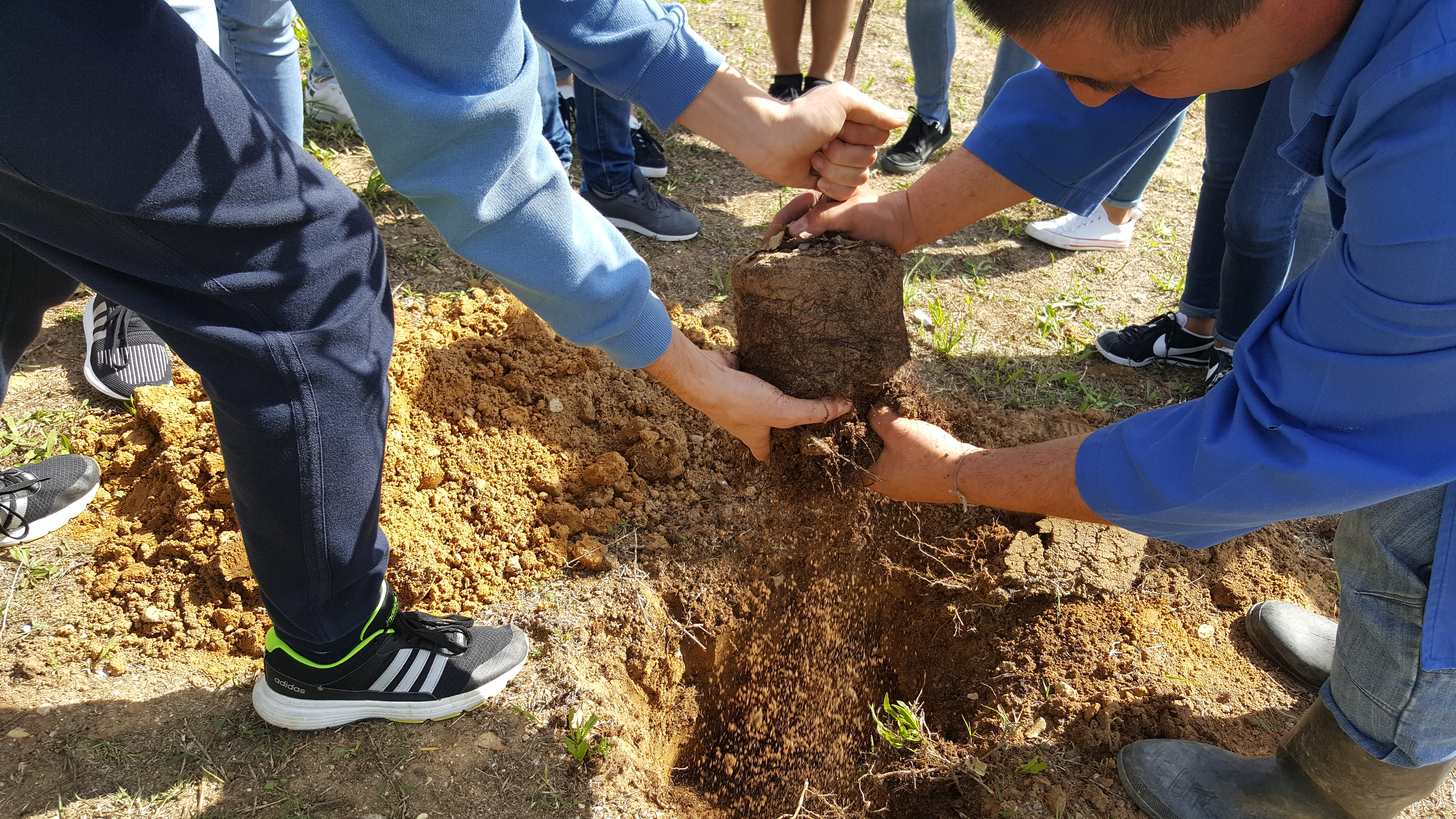 Os alunos do 9º 1ª, a professora de geografia e um assistente operacional plantaram 9 arbustos nativos, nos espaços exteriores da escola: 6 medronheiros, 2 carrascos e 1 lentisco. Estas espécies foram fornecidas pela empresa Secil